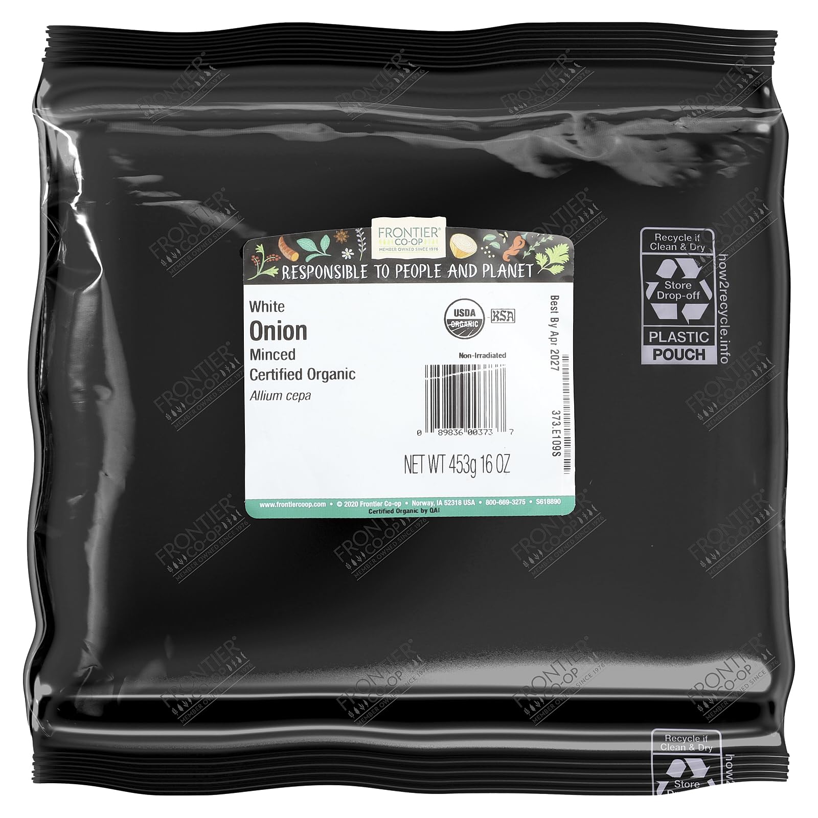 Frontier Co-Op Certified Organic White Minced Onion, 1-Pound Bulk, Warm, Sweet, Salty Flavor For Stews & Soups, Kosher