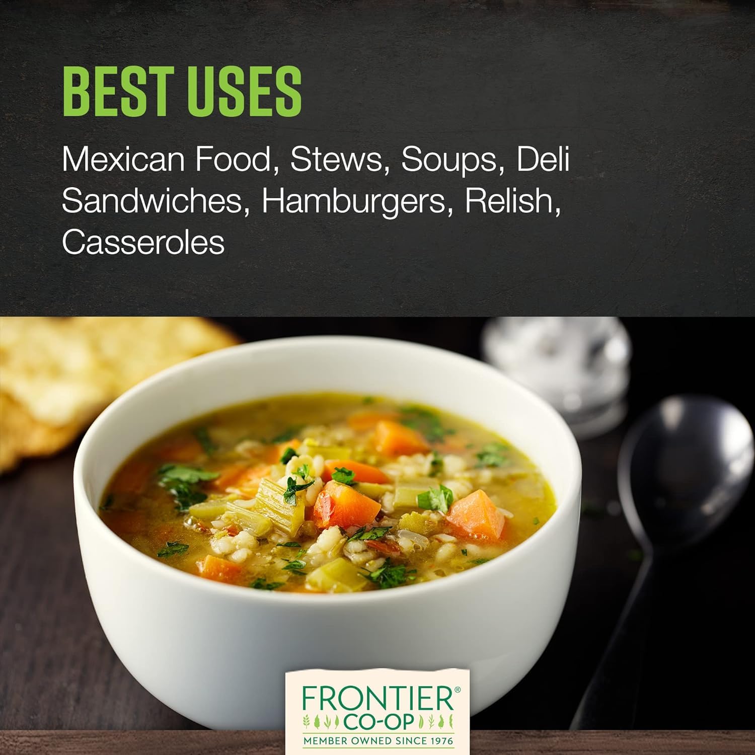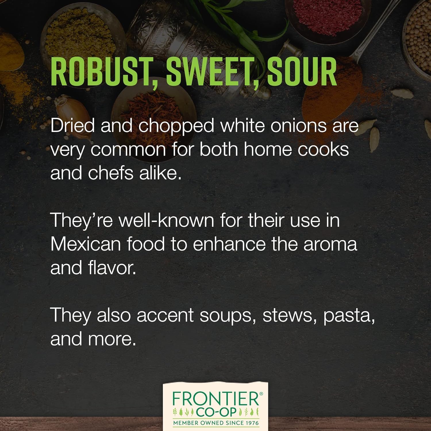 - Q: What makes Frontier Organic Chopped Onion a sustainable choice? A: Frontier Organic Chopped Onion is sustainably sourced, supporting ethical farming practices and reducing single-use packaging waste. By choosing this product, you're contributing to environmentally friendly practices and supporting growers committed to sustainable agriculture.