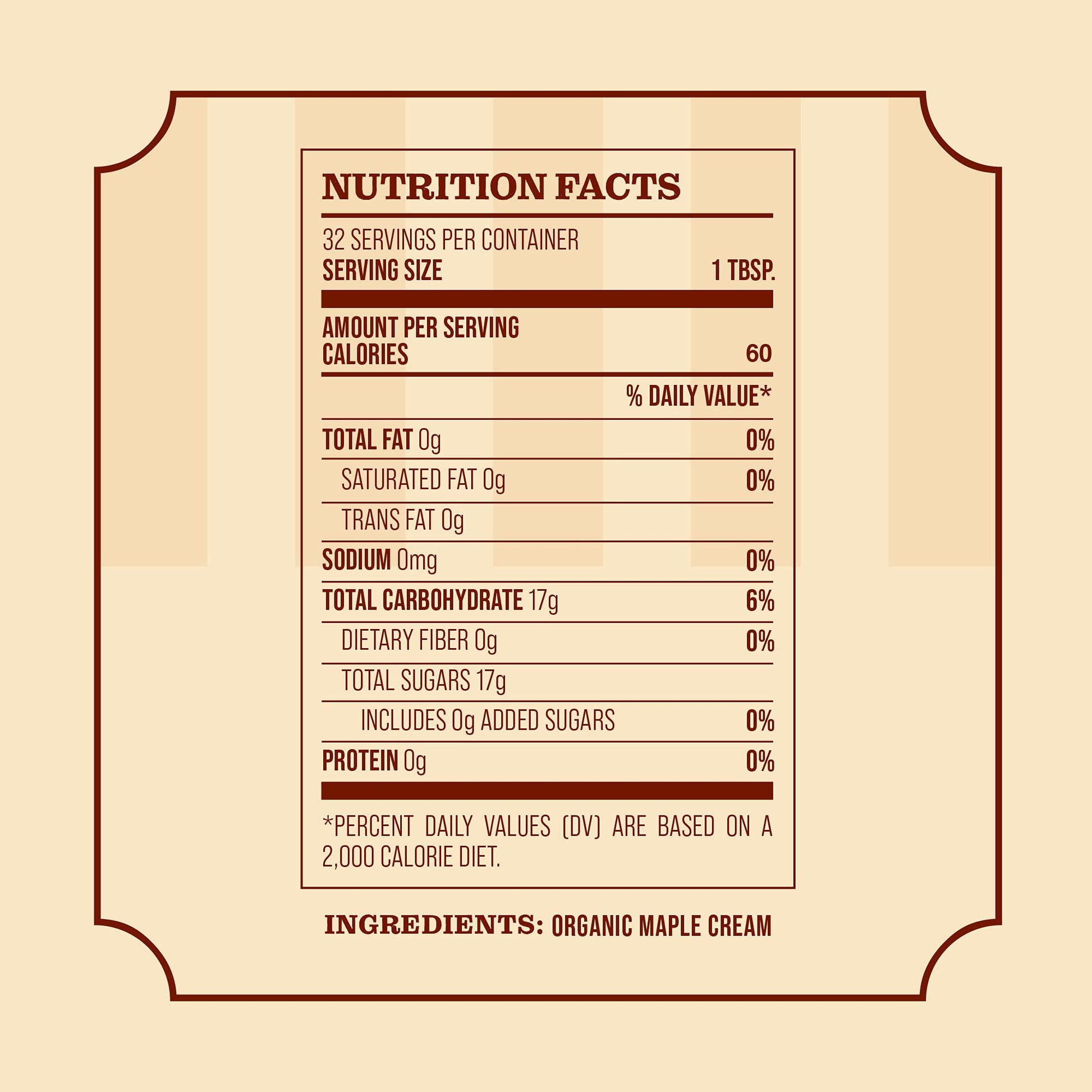 • Q: What are the nutritional benefits of Organic Maple Cream? A: Organic Maple Cream is rich in antioxidants and minerals, making it a healthier alternative to many sweet spreads. Its single ingredient—maple sap—provides natural sweetness without artificial flavors or preservatives, aligning with health-conscious dietary choices.