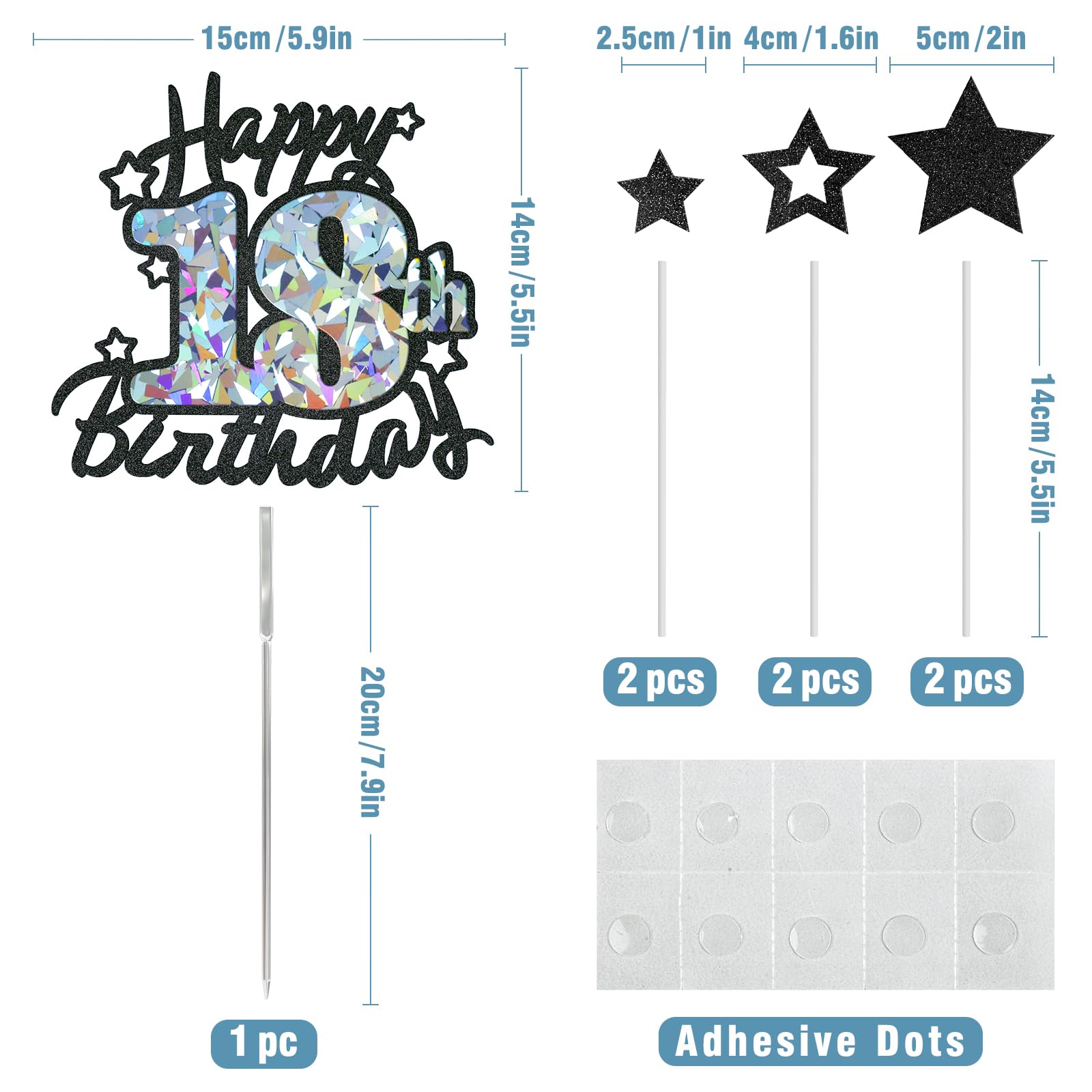 ;Celebrate Your Special Year With Our Birthday Cake Topper. This Exquisite Piece Is More Than Just A Decoration; Its A Symbol Of Love, Joy, And Unforgettable Memories. Crafted With A Stunning Glitter Finish, This Topper Brings An Elegant Touch To Your Celebration, Making Your Cake The Highlight Of The Event. ;Ideal For Happy Birthday Theme Party, Anniversary Celebrating Theme Party Cake Decorations Supplies. Attention This Cake Topper Features Glitter On One Side And Is White On The Other. It'S Meant For Decoration Only, So Please Do Not Place It In The Oven Or Microwave. Specifications Material:&Nbsp; - Glitter Card Stock + Plastic Stick - Adhesive Dots Package Includes: - 1 Pc Happy 18Th Birthday Cake Topper - 1 Pc Food-Grade Clear Plastic Stick - 6 Pcs Glitter Stars - 6 Pcs White Plastic Sticks - 10 Pcs Adhesive Dots