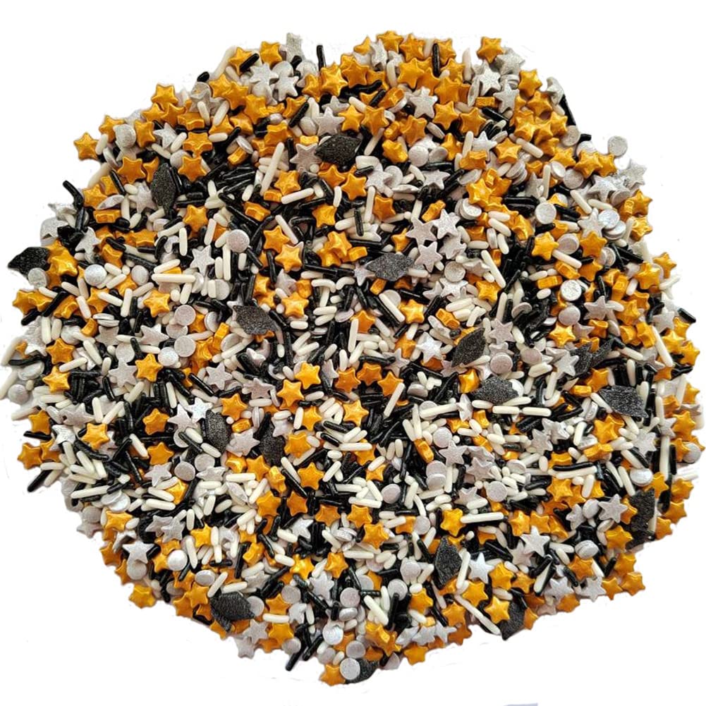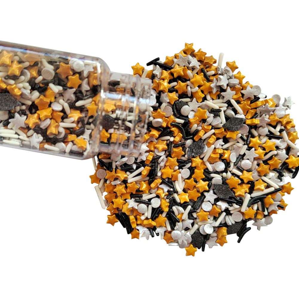 Q: What is the weight of the Homankit Graduation Season Theme Sprinkles bottle?A: The bottle contains 3.35 ounces (95 grams) of edible school graduation theme sprinkles candy mix.