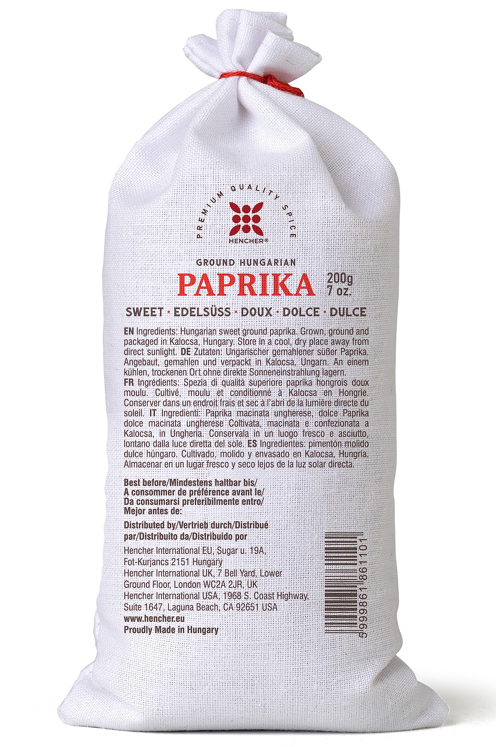 • Q: Is the Hungarian paprika packaged in a way that preserves its freshness? A: Yes, our sweet Hungarian paprika is packed in a traditional canvas bag that protects it from light and discoloration, ensuring that the flavor remains intact. Proper storage helps maintain its quality, allowing you to enjoy its incredible flavor for longer.