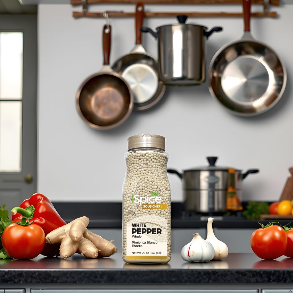 - Q: How do I grind whole white peppercorns for use in recipes? A: To grind iSpice Whole White Peppercorns, use a pepper mill or spice grinder. Adjust the coarseness to your preference, and add the freshly ground pepper to your dishes for the best flavor.