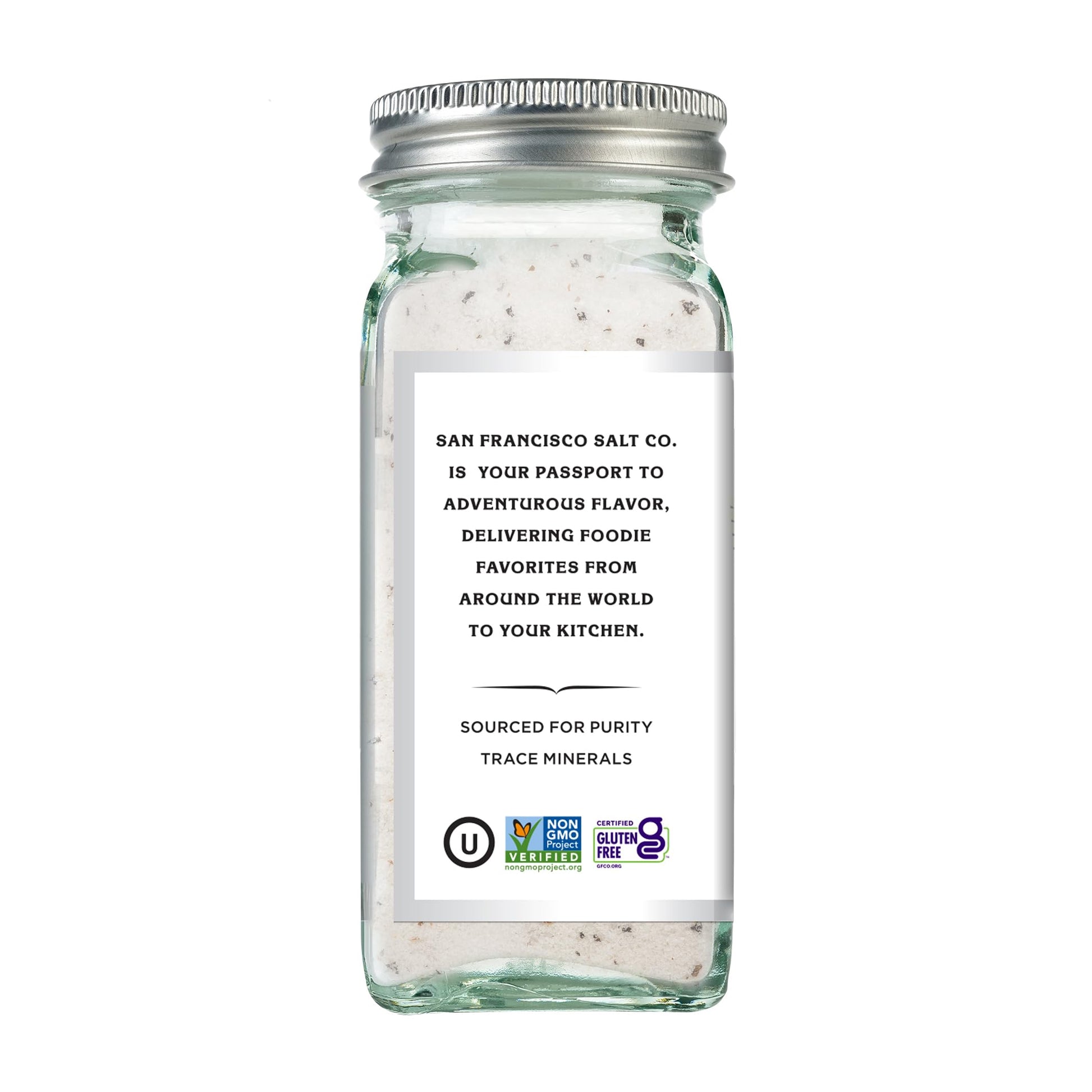 - Q: What are the key ingredients in Italian Black Truffle Sea Salt? A: This gourmet salt is made from pristine sea salt infused with black truffles sourced from the Abruzzi region of Italy. It is Kosher Certified, Non-GMO, and free from MSG, soy, gluten, dairy, and anti-caking agents.