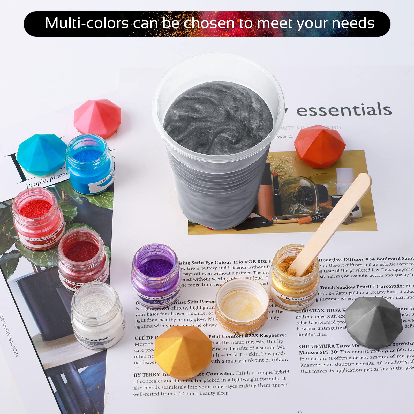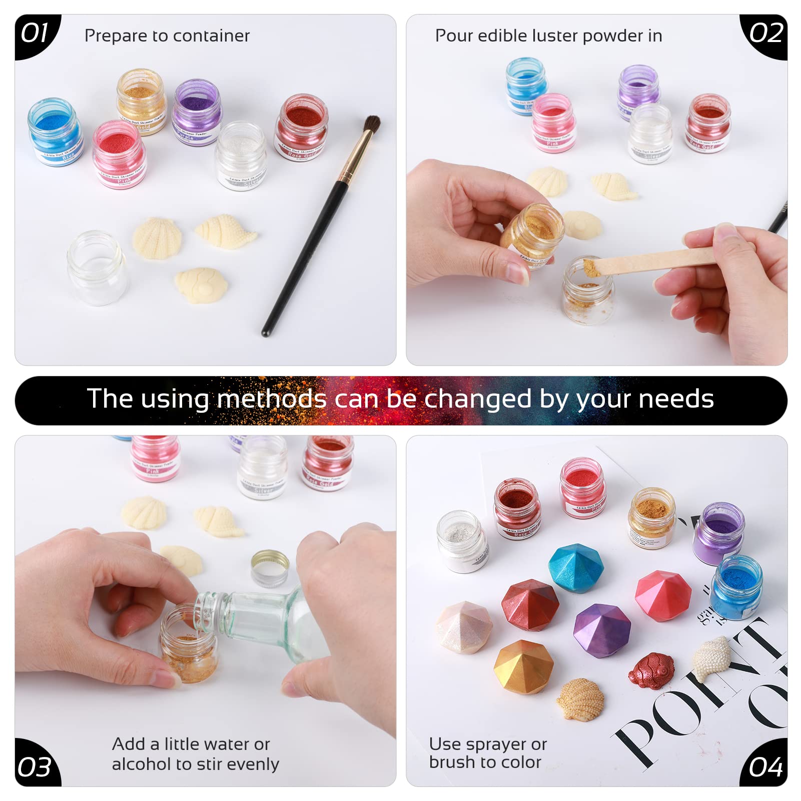 Q: Are there different colors of luster dust available?A: Yes, Jelife offers a variety of 12 metallic luster dust colors, including gold, silver, rose gold, pink, blue, and more, allowing you to choose the perfect shade for your cake decorating needs.