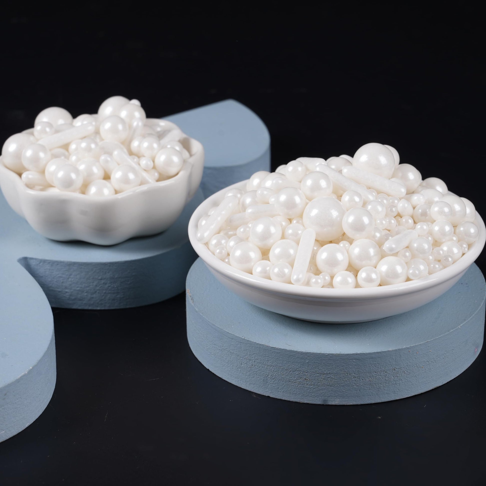 Q: What sizes do the edible pearls come in?A: The edible pearls in the Kasvan White Mix Sugar Sprinkles are available in mixed sizes, including sugar beads of 2mm, 4mm, 6mm, 8mm, and 10mm. This variety allows for creative decoration options.
