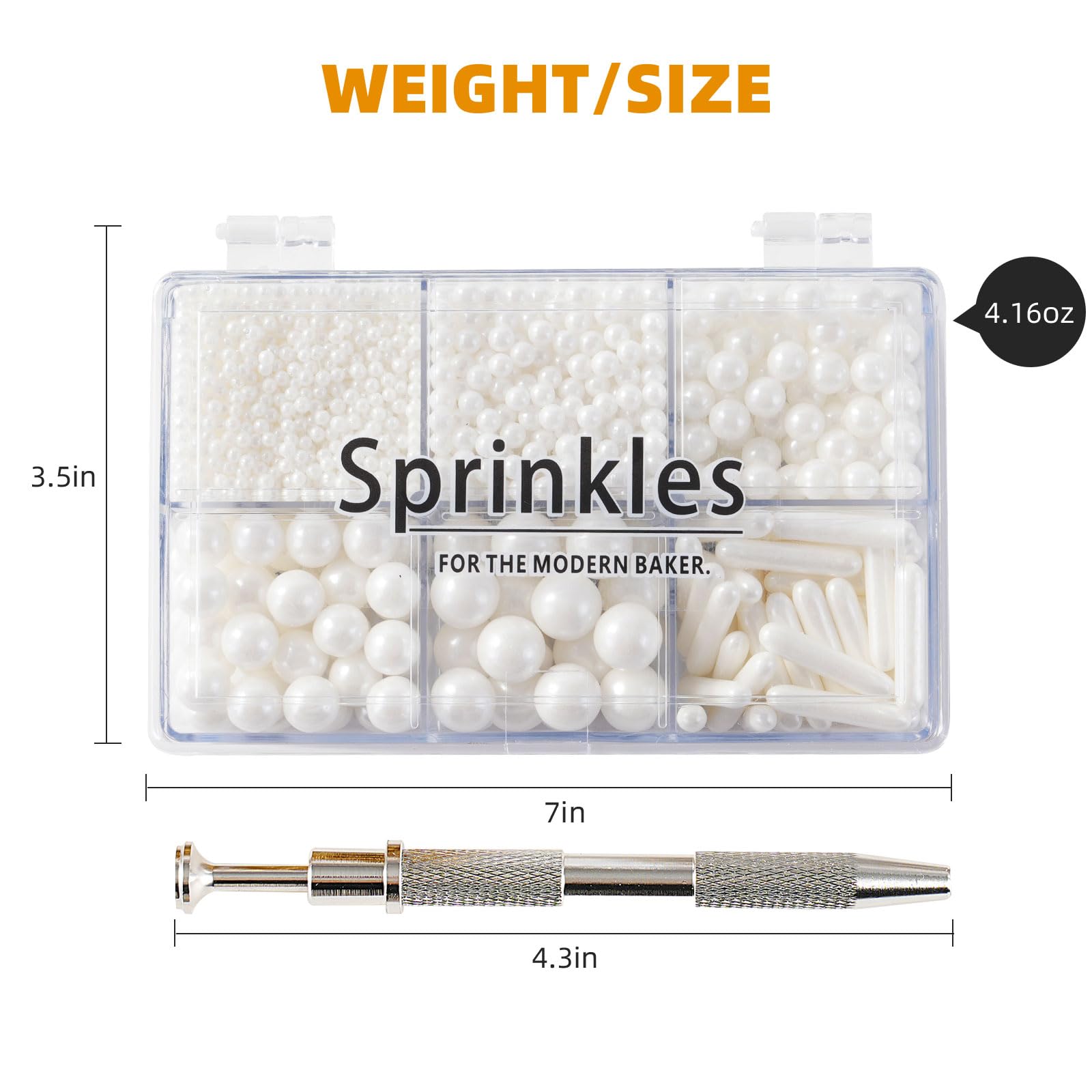 Product List: You Will Receive: 1 Box Of Gold Cake Sprinkles, 118G/4.16Oz. 1 Piece Of Pearl Grabber. Sufficient Quantity, Convenient And Practical, It Can Meet Your Daily Needs Well. Excellent Material: Gold Sprinkles For Cake Decorating Are Made Of Food-Grade Safe Ingredients, You Can Eat Them With Confidence. It Can Be Eaten By Men, Women, Old And Young. The 4-Claw Pick Up Tool Is Made Of Stainless Steel Material, Durable And Retractable, It Allows You To Clamp And Place Pearl Sugar Smoothly. Different Sizes: Edible Pearls For Cakes Are Available In Gold Pearls And Silver Pearls. It Consists Of Pearl Sprinkles In Mixed Sizes: Sugar Beads 2Mm, 4Mm, 6Mm, 8Mm. 10Mm, Candy Beads. The Silver Cake Sprinkles Are Crystal Clear And The Gold Edible Pearls Are Dazzling. It Can Be Perfectly Matched With Other Decorations. Multi-Purpose: Gold Pearls Candy Decorations Is Widely Used, It Can Be Used For Decoration Of Various Foods, Such As Cakes, Cookies, Ice Cream, Cupcakes, Donuts, Etc. Sprinkles For Cake Decorating Are Suitable For Weddings, Birthdays, Halloween, Christmas And Other Theme Parties, It Can Make Your Baking Full Of Festive Atmosphere! Note: The Bigger The Sugar, The Harder It Is. It Is Normal For Large Candies To Have A Hard Texture. It Is Edible. We Recommend For Decorative Use Only. It Is Recommended To Decorate Items After Baking To Prevent The Edible Pearls From Melting During Baking. Please Use It As Soon As Possible After Opening.