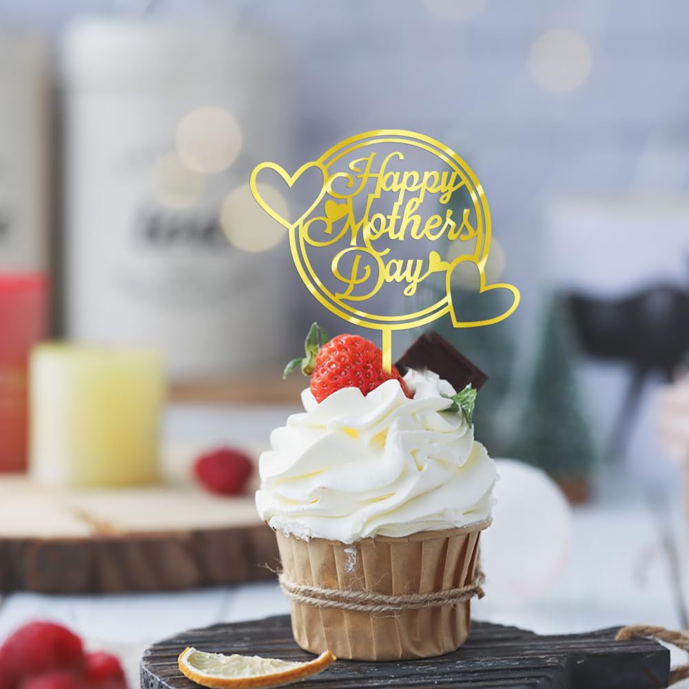 Q: What material are the Happy Mother's Day cake toppers made from?A: The Happy Mother's Day cake toppers are made from high-quality acrylic, providing a durable and elegant touch to your cake decoration.