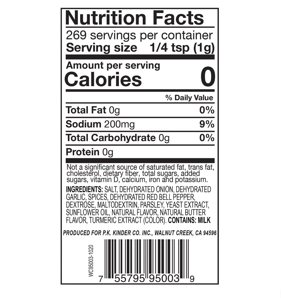 • Q: What is the size of the container, and how many meals can I season with it? A: The seasoning comes in a generous 9-ounce container, providing ample seasoning for multiple meals. Depending on the amount used per dish, you can easily season several steak dinners, roasts, or other meat dishes with this single container.