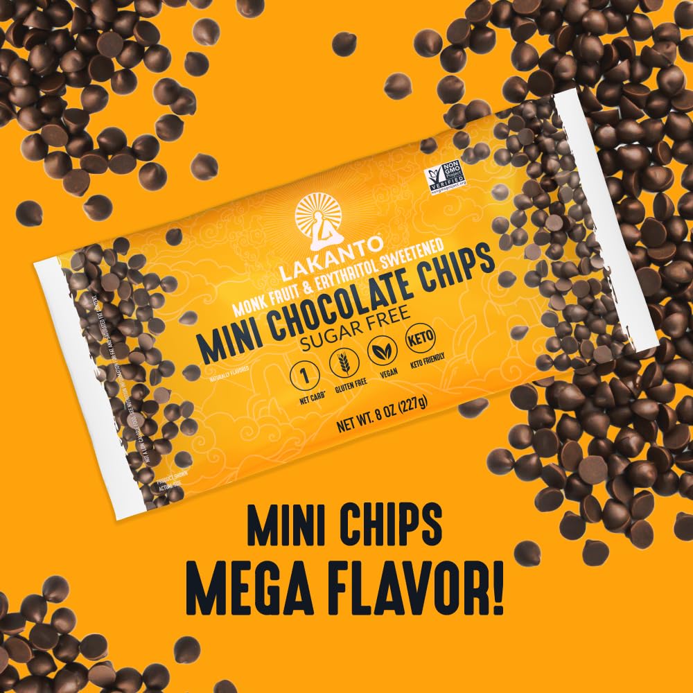 Lakanto Sugar Free Mini Chocolate Chips - Monk Fruit Sweetener And Erythritol, Perfect For Baking, Pancakes, Muffins, Protein Bites, Melting, Snacking, Toppings, Smoothies (8 Oz - Pack Of 3)