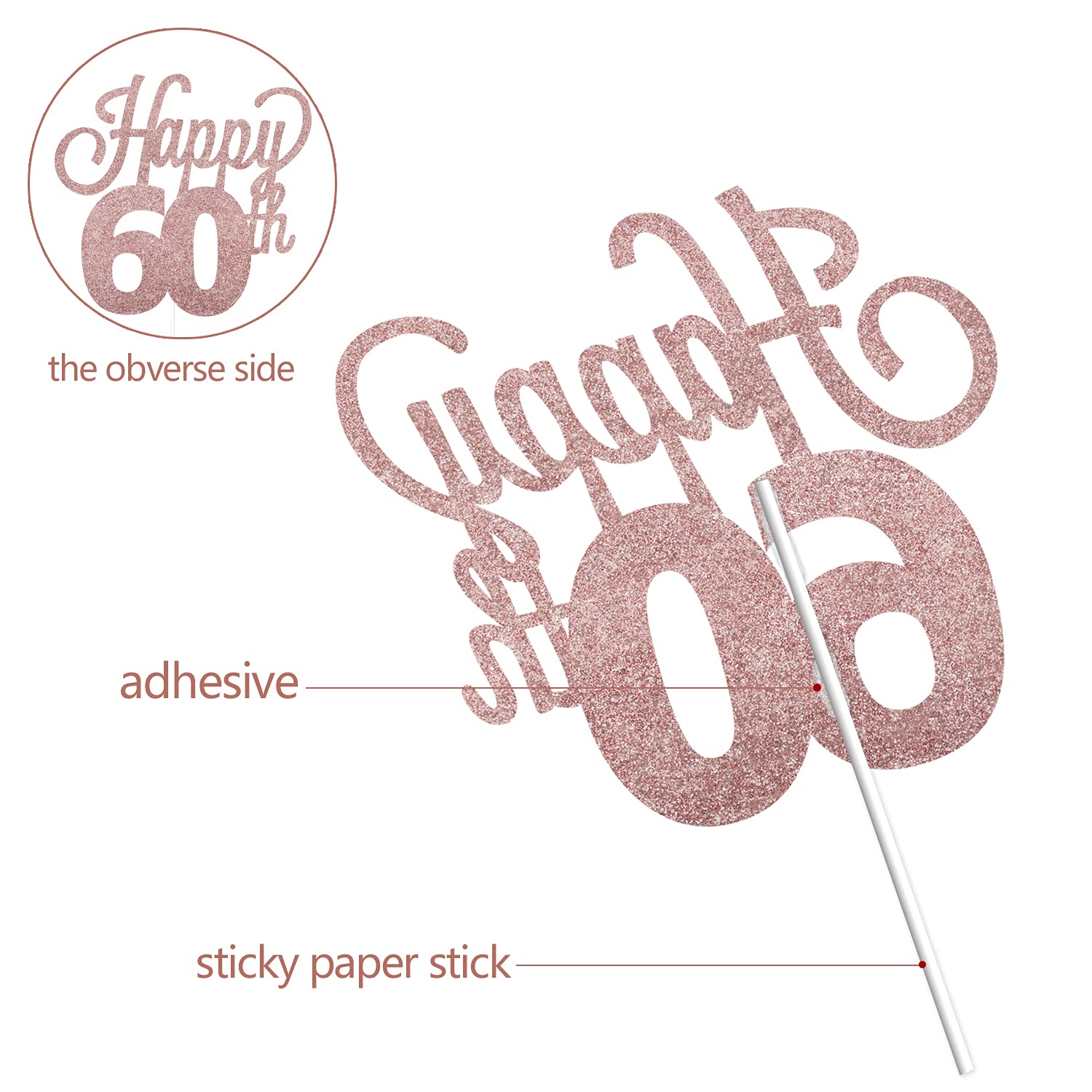 Q: What materials are used in the LINGTEER Happy 60th Birthday Cake Topper?A: The LINGTEER Happy 60th Birthday Cake Topper is made from high-quality rose gold thick paper, featuring glitter details that enhance its visual appeal.