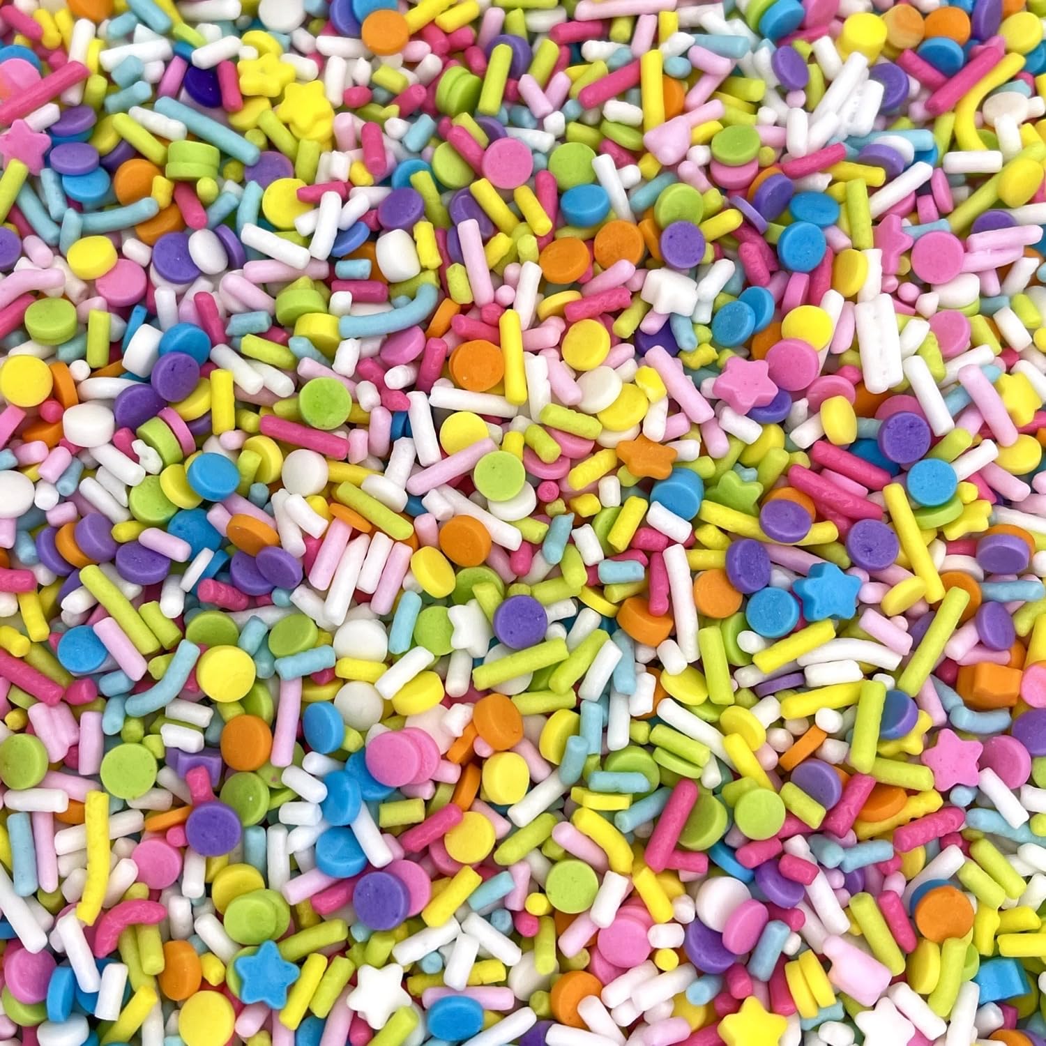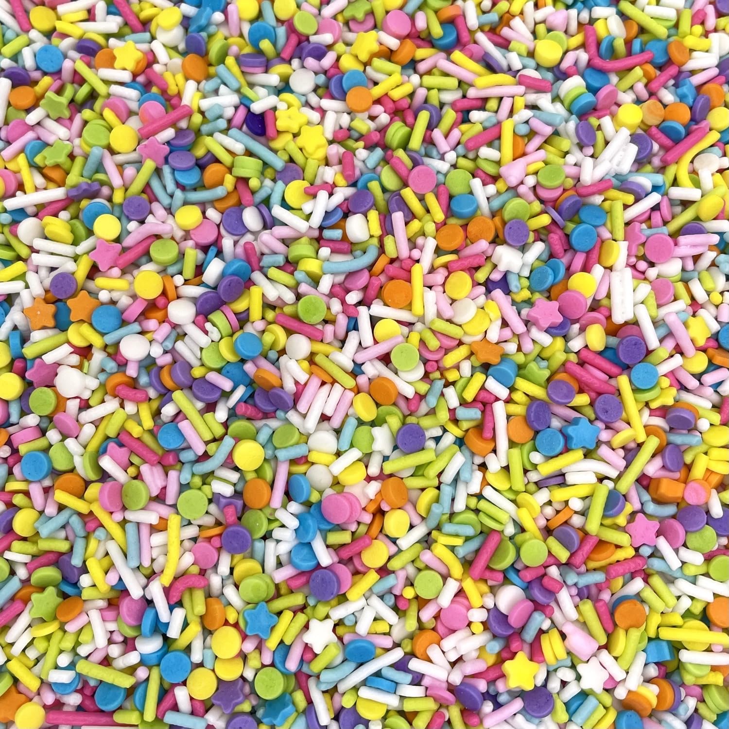 Q: What occasions are these sprinkles suitable for?A: These sprinkles are ideal for various occasions, including birthdays, Easter themed desserts, spring parties, and baby showers, enhancing the festive atmosphere.