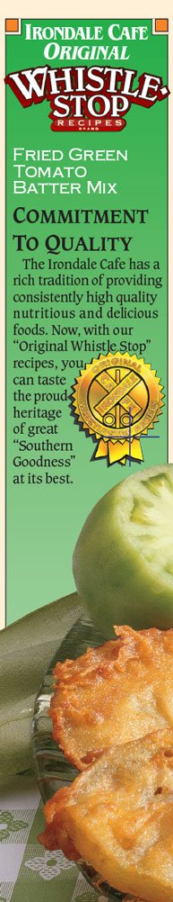 Whistle Stop Cafe Fried Green Tomato Batter Mix has soared in popularity due to its great taste, ease of use, and its versatility. It has a delicate blend that coats well, enhances, yet allows the flavor of the vegetables being cooked to come through. Bill and Mary Jo McMichael bought the Irondale Cafe in 1972 from Miss Bess Fortenberry, Fannie Flagg’s Great Aunt. It sat 36 people. Over the years word spread of the delicious home cooking at the little cafe next to the tracks in old Irondale, Alabama. They expanded to a capacity of over 220 with lines out the door. In 1986 Fannie’s novel “Fried Green Tomatoes at the Whistle Stop Cafe” came out, the cafe became known as the Original WhistleStop Cafe. The McMichael Family developed the now famous line of delicious mixes and seasoning in 1993 that are now sold in some chains and to over 2000 independents grocers and markets in 48 states. We get compliments from satisfied customers from all over the country. Hope you enjoy.