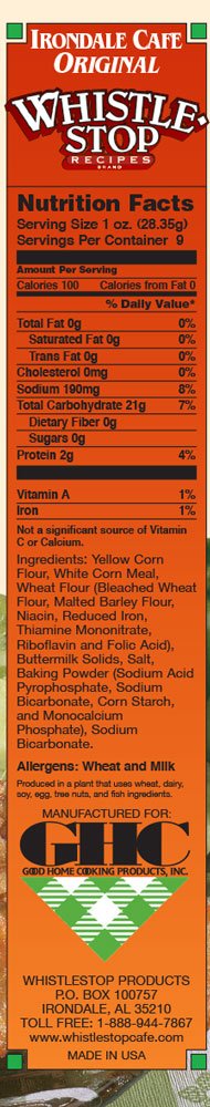 - Q: What is the origin of the WhistleStop Cafe brand? A: The WhistleStop Cafe brand originated from the Irondale Cafe in Alabama, which was purchased by Bill and Mary Jo McMichael in 1972. The cafe gained fame through the novel 'Fried Green Tomatoes at the Whistle Stop Cafe' by Fannie Flagg, leading to the development of their famous batter mixes and seasonings.
