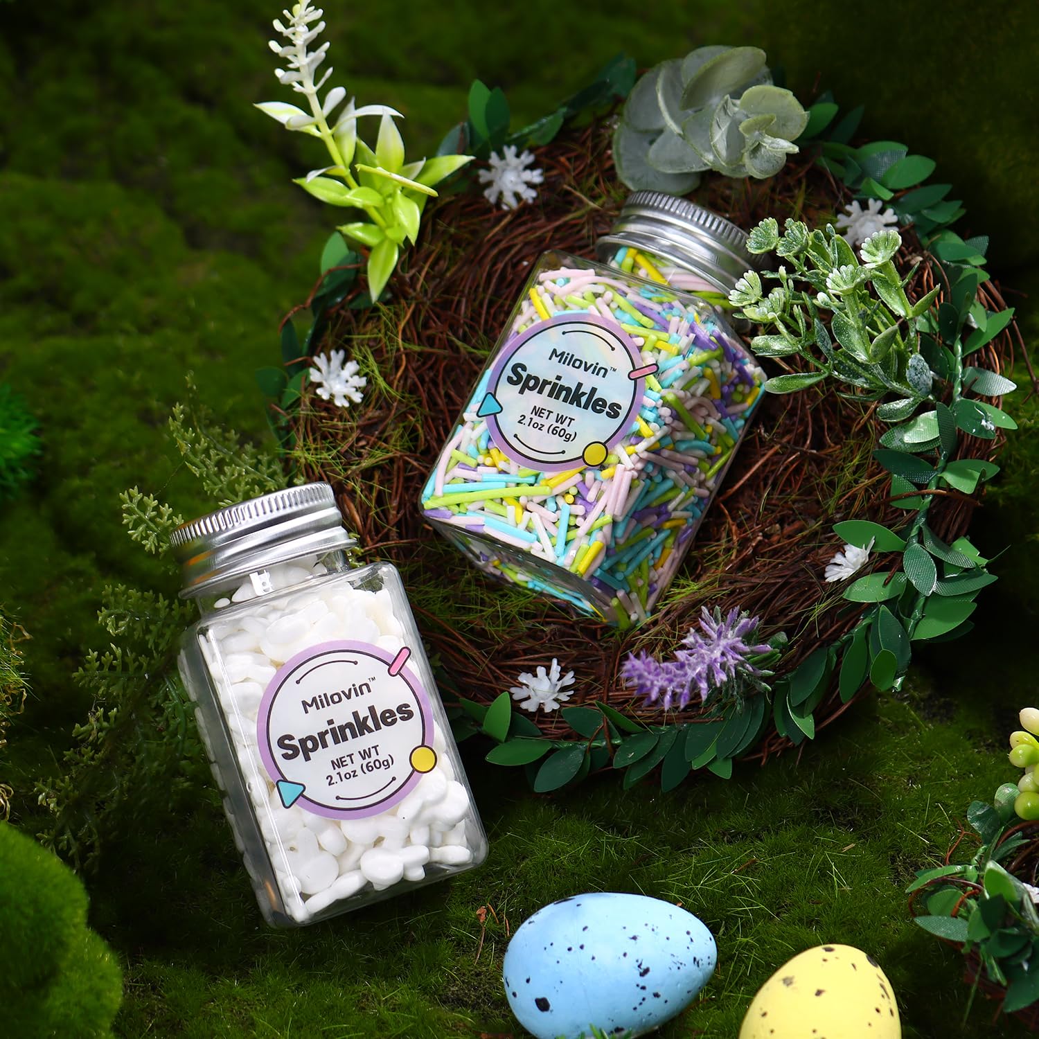 Pastel Sprinkles Jimmies, White Bunny Cupcake Toppers, Edible Easter Sprinkles, Spring Sprinkles For Easter Theme Cake, Spring Cupcakes, Cookies, Ice Cream, Macarons
