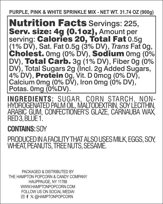 Q: How much sprinkles are included in the container?A: The container holds 1.98 pounds (31.74 ounces) of pink, purple, and white sprinkles, providing ample supply for multiple baking projects.