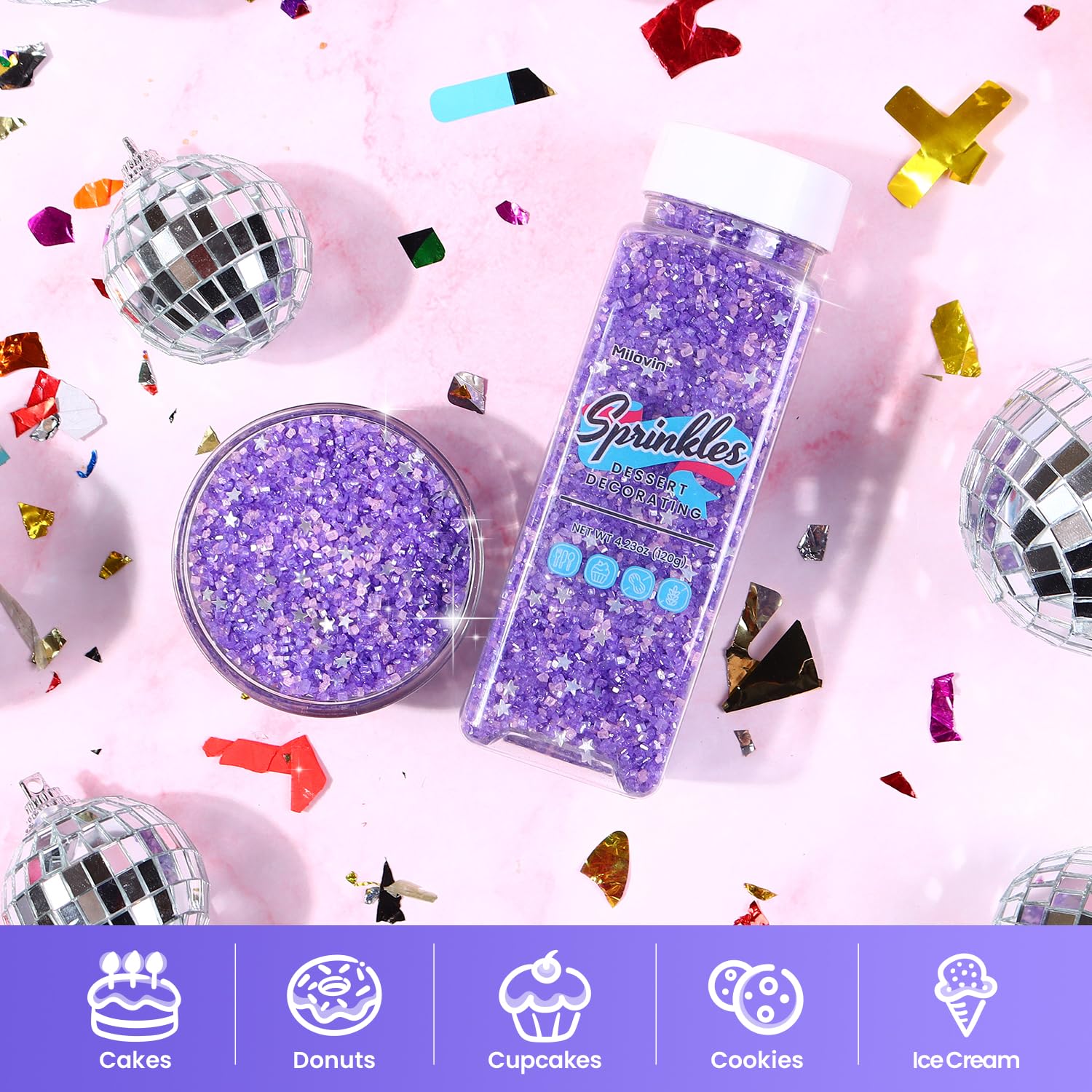 Sanding Sugar Metallic Silver Glitter Mix, Pink Sanding Sugar, Purple Sanding Sugar, Shimmer Silver Star Sprinkles, Pink And Purple Sprinkles For Baking, Cupcakes, Cakes, Cookies, Macaron, And Ice Cream(4.23Oz/120G)