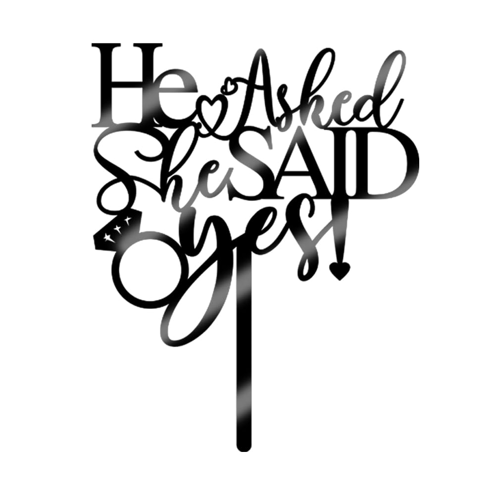 Q: What material is the Qertesl He Asked She Said Yes Cake Topper made of?A: The cake topper is made of environment-friendly, non-toxic acrylic acid, ensuring food safety and environmental protection. It is reusable and can be directly placed on the cake without any assembly.