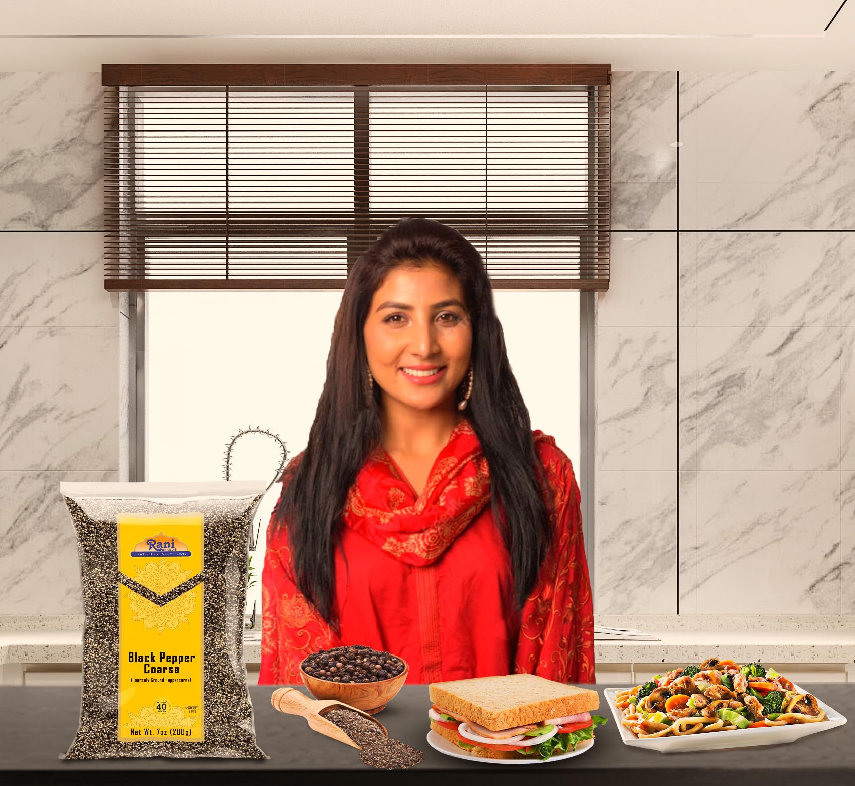 Q: What is Rani Black Pepper Coarse Ground used for?A: Rani Black Pepper Coarse Ground is ideal for seasoning a variety of dishes, enhancing flavor in soups, stews, meats, and vegetables. It can also be used as a finishing spice to add a pungent kick just before serving.