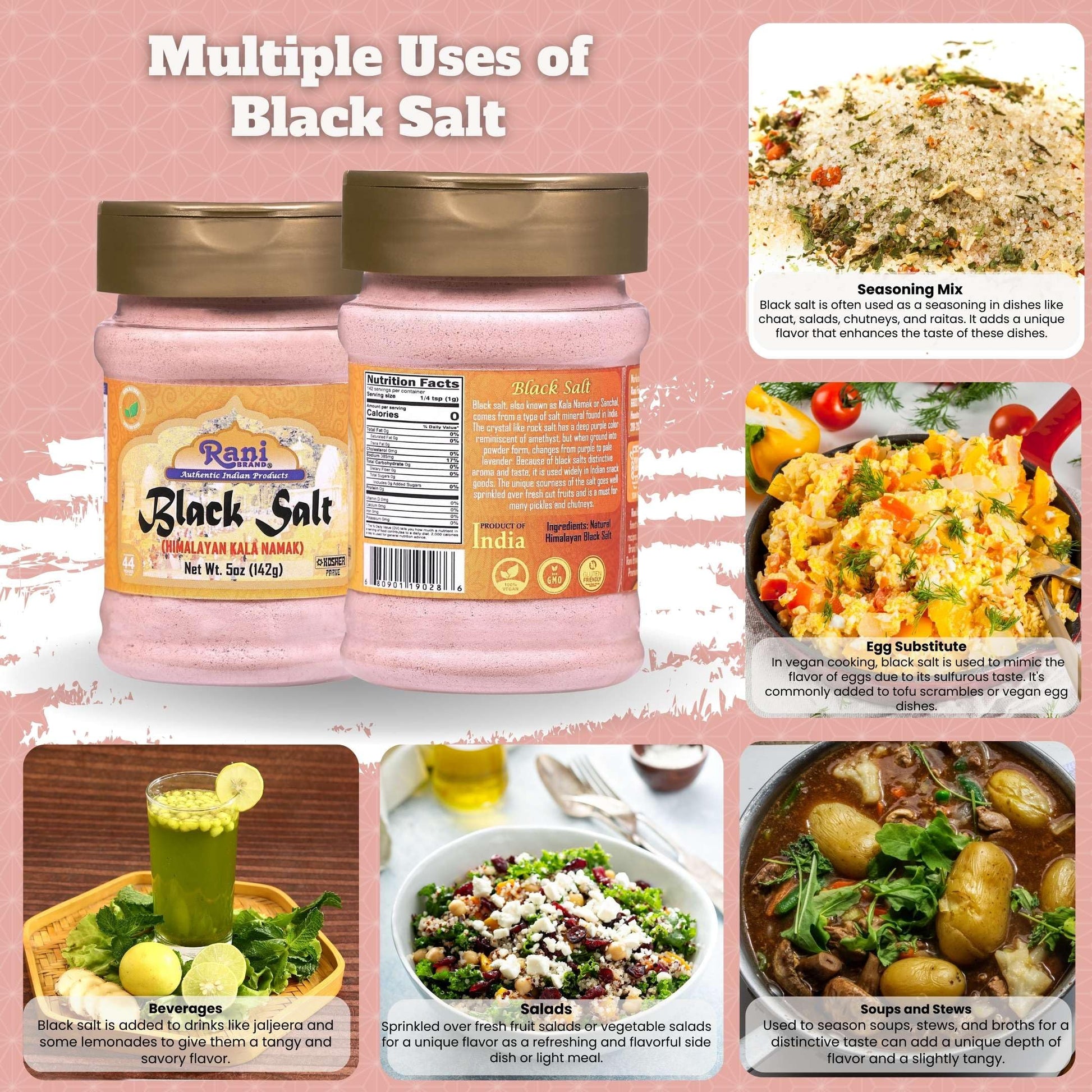 - Q: How can I use Rani Black Salt Powder in my cooking? A: Rani Black Salt Powder is versatile and can be used in various dishes. It is particularly popular in vegan cooking for replicating the taste of eggs in dishes like tofu scrambles. Additionally, it can enhance the flavor of fresh fruits, salads, chutneys, and pickles, making it a great addition to a wide range of recipes.