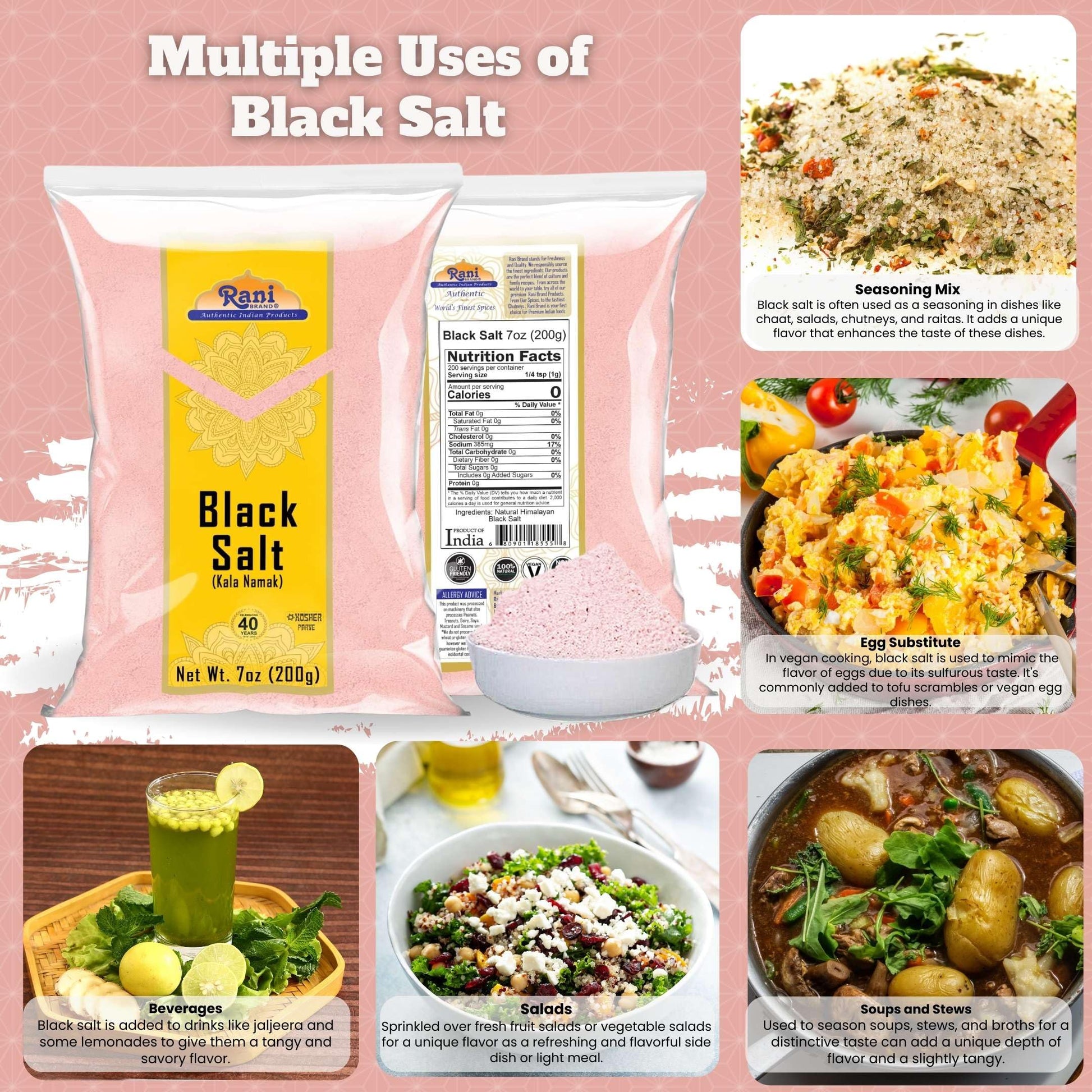 - Q: What is Rani Black Salt Powder and how is it used? A: Rani Black Salt Powder, also known as Kala Namak, is an unrefined mineral salt that originates from India. It is commonly used in Indian cuisine, especially in vegan dishes, to replicate egg flavors. You can sprinkle it over tofu scrambles, fresh fruits, or use it in pickles and chutneys to enhance flavor.