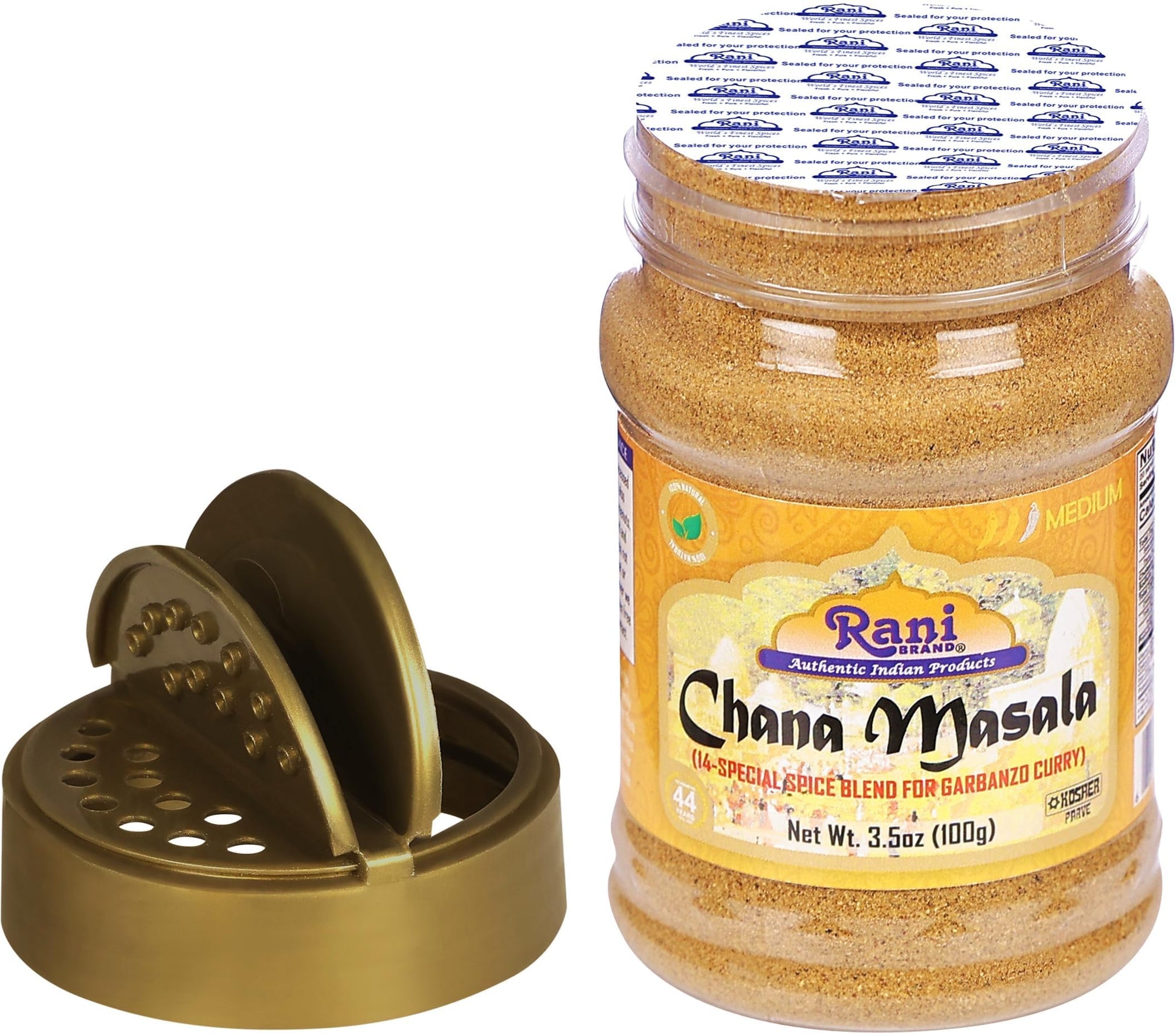 Rani Chana Masala (Spice Blend For Making Garbanzo Curry) Is An Exquisite Blend Of Spices Used Mainly In Chole (Garbanzo Beans Curry) Our Blends Take Out The Hassle Of Having Several Different Spices To A Jar. Chana Or Cholle Are A Mainly North Indian Dish. This Rich Curry Is Aromatic With The Taste Of Ginger, Tamarind And Onions. Simply Boil The Garbanzos, Add The Fresh Ingredients And Rani Chana Masala. Bring To A Boil. Serve With Bhatura Or Rice. Ingredients: Dry Mango Powder, Coriander, Salt, Pomegranate, Chilli, Cumin, Black Pepper, Cardamom, Fenugreek, Nutmeg, Ginger, Cinnamon, Cloves, Caraway, Mace, Mustard