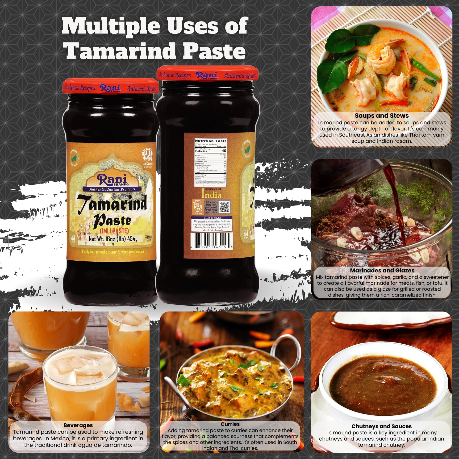 Q: What is Rani Tamarind Paste used for?A: Rani Tamarind Paste is commonly used as a souring agent in various dishes, especially in South Indian and Gujarati cuisine. It enhances the flavor of lentil soups, sambars, rasams, and is also a key ingredient in making tamarind chutney.