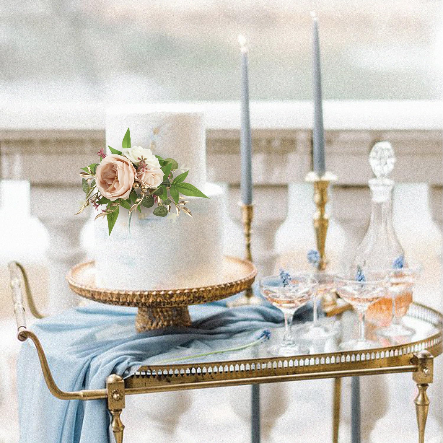 Q: Are the cake toppers and side arrangements easy to use?A: Yes, the cake toppers and side flower arrangements are wired and taped, making them quick and easy to place on your cake without any additional preparation.