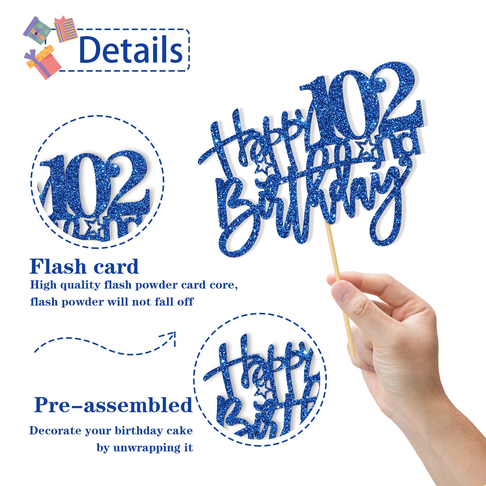 Q: How do I use the RoadSea 102nd Birthday Cake Topper?A: This cake topper comes pre-assembled and can be used directly upon receipt. Simply place it on top of your cake to add a festive touch to your 102nd birthday celebration.