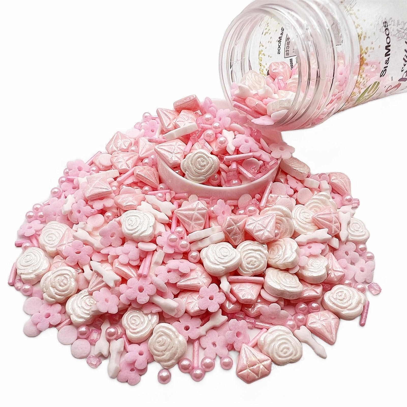 Q: How can I use these edible sprinkles?A: These edible pink flower sprinkles can be used for a variety of applications including cake decorating, cupcake toppings, ice cream embellishments, and as colorful accents for cookies and pastries.