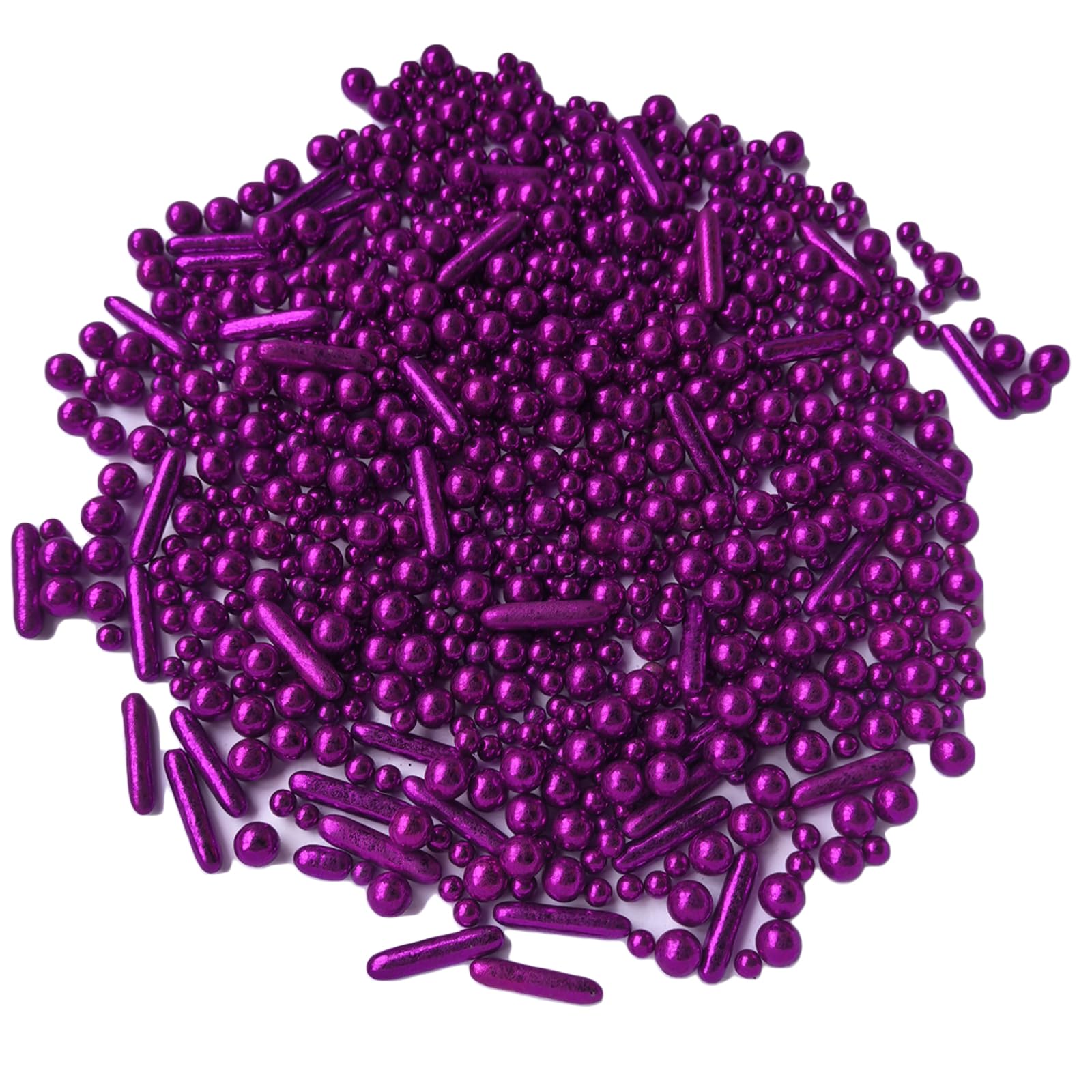 Q: What are the ingredients in the Purple Pearl Sugar Candy Mix?A: The Purple Pearl Sugar Candy Mix is made from sugar, beet root, spirulina, and carnauba wax. It is gluten-free and nut-free, making it a safe choice for various dietary needs.