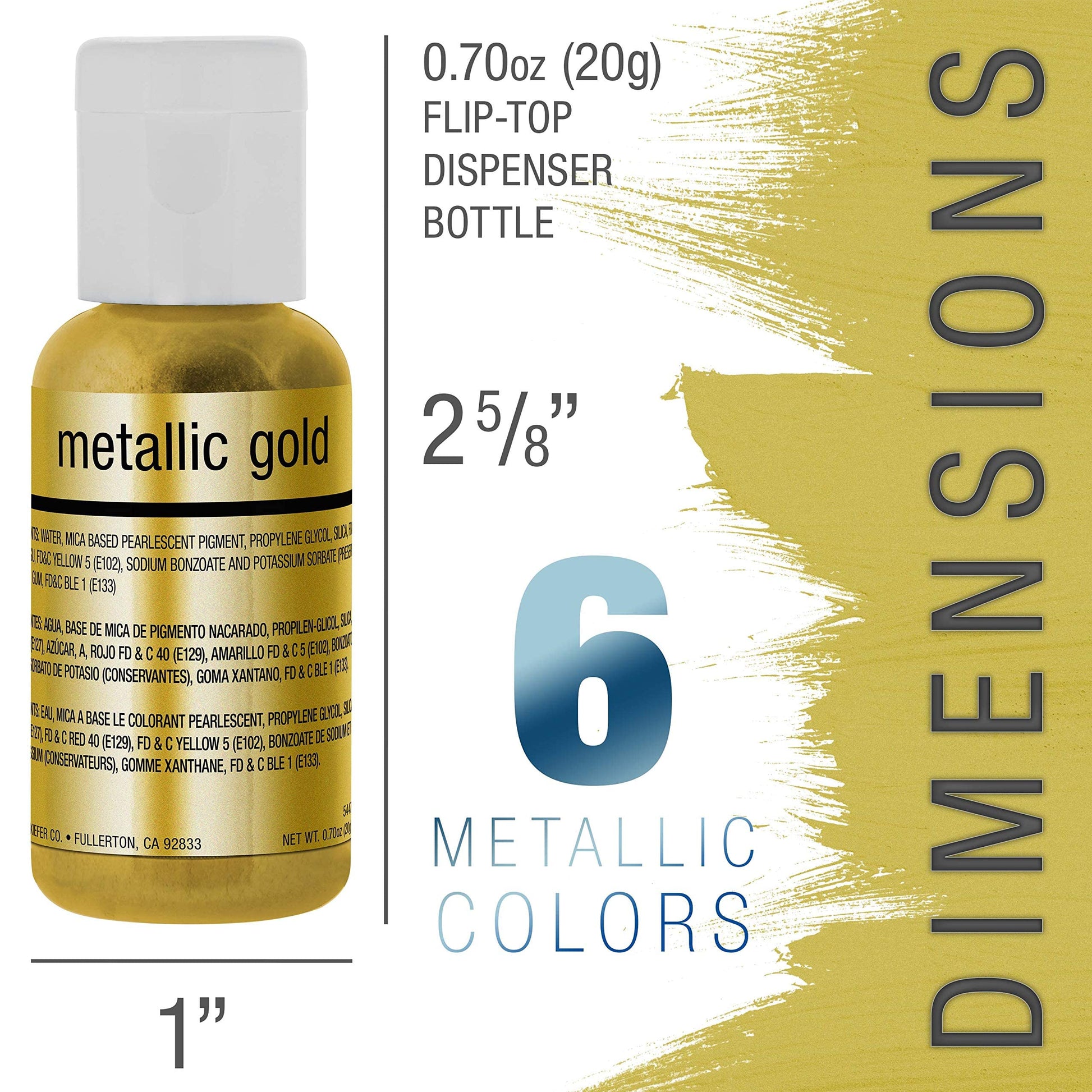 U.S. Cake Supply Airbrush Cake Pearlescent Shimmer Metallic Color Set - The 6 Most Popular Metallic Colors In 0.64 Fl. Oz. (19Ml) Bottles - Safely Made In The Usa Product