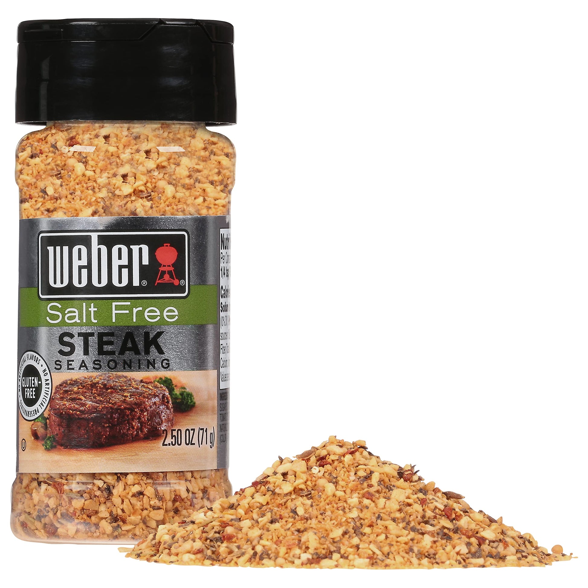 • Q: What is the size of the Weber Salt Free Steak Seasoning shaker? A: The Weber Salt Free Steak Seasoning comes in a convenient 2.5-ounce shaker, making it easy to measure and apply just the right amount of seasoning to your meals.