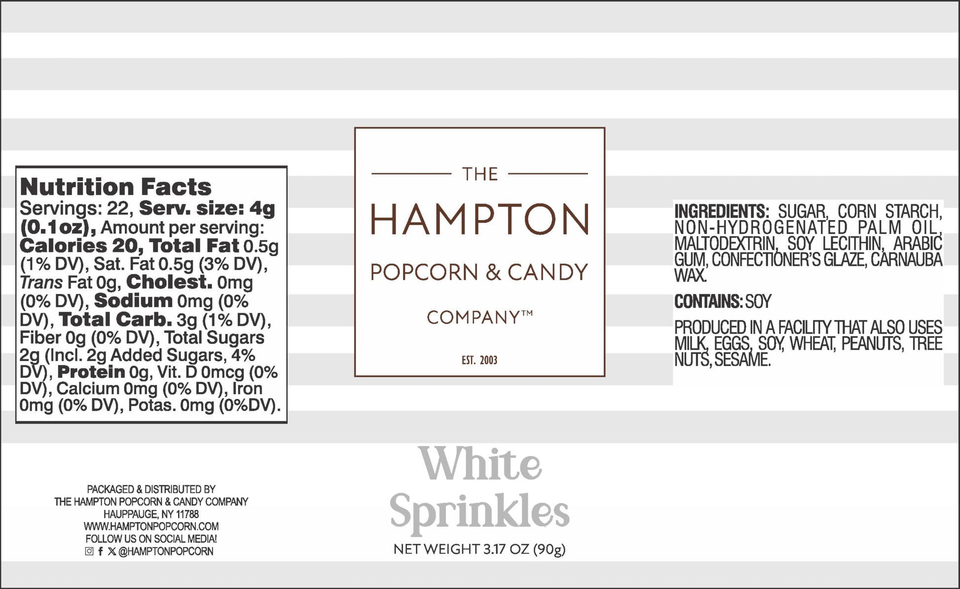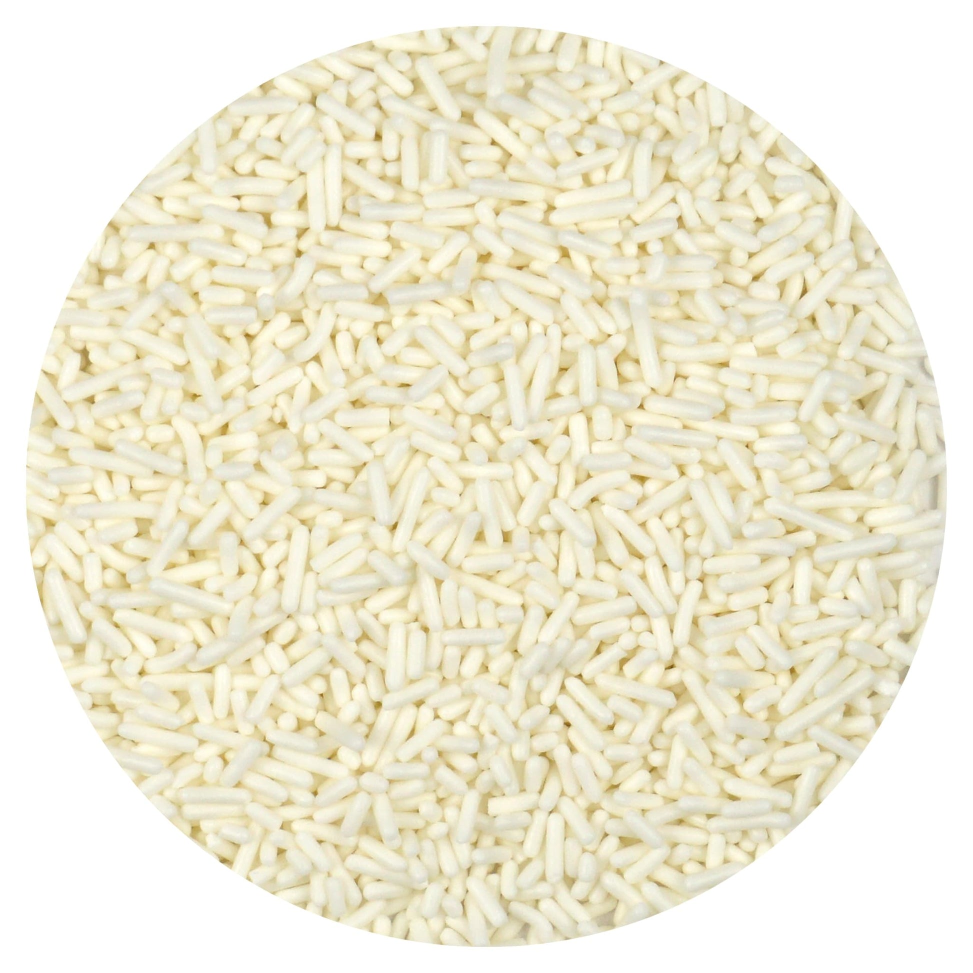 Q: What are the main uses for White Sprinkles Jimmies?A: White Sprinkles Jimmies are perfect for decorating cupcakes, cakes, cookies, and ice cream sundaes. Their playful color and texture make them a versatile choice for any baking project or celebration.