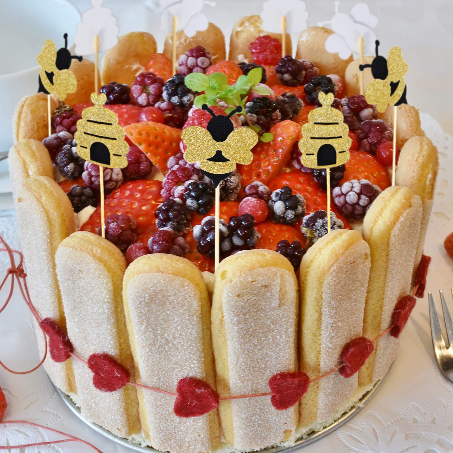 Q: Are these cupcake toppers safe for food use?A: Yes, the bee cupcake toppers are made from non-shedding glitter card stock and toothpicks, ensuring they are safe for daily use and suitable for decorating cakes and cupcakes.