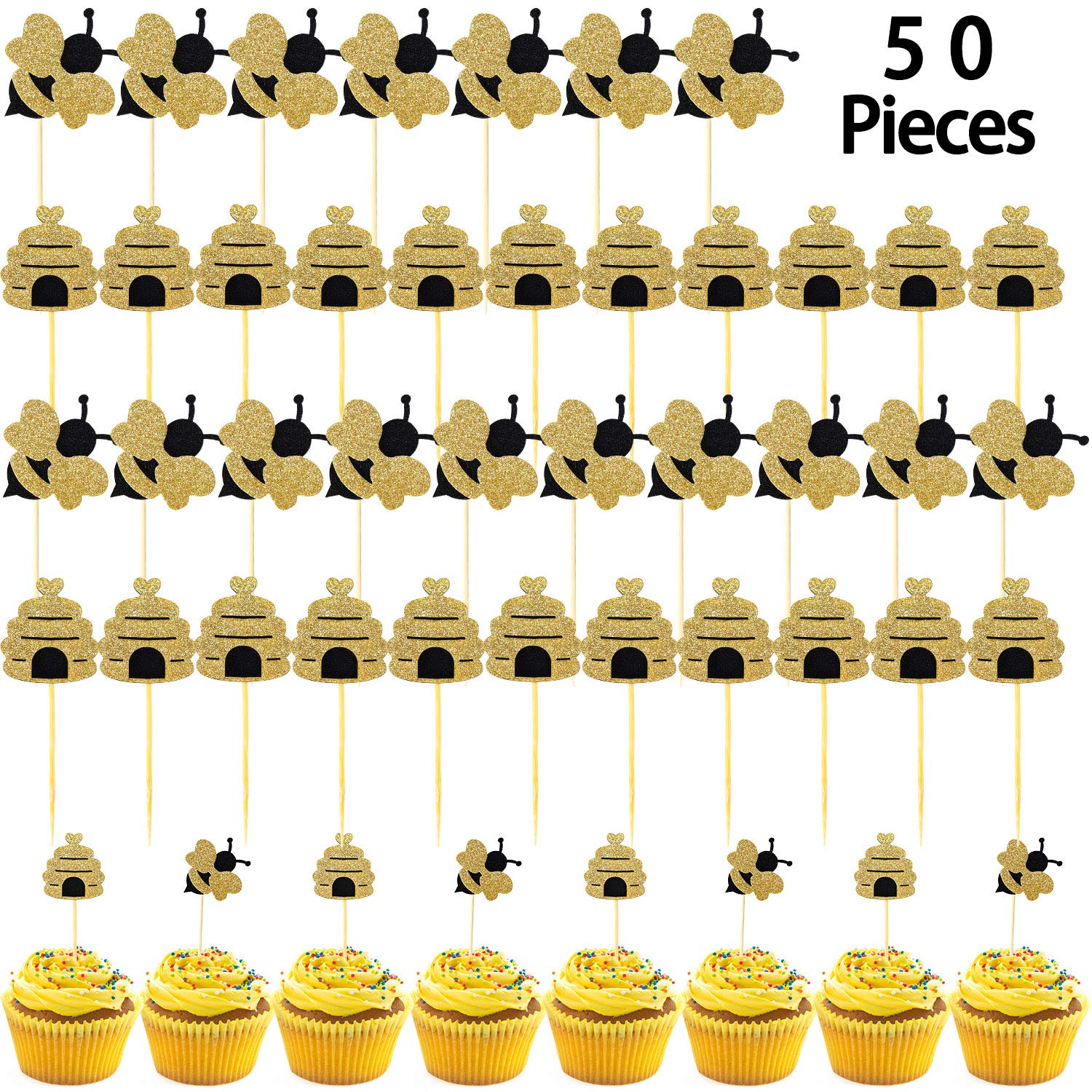 Features: Chic Design: These Cupcake Toppers Feature Glitter Gold Bees (White On Reverse) And Honeycomb, Ideal For Bringing A Little Fun And Whimsy To Your Bee Themed Baby Shower, Bridal Shower Or Birthday Party Quality Material: Made Of Non-Shedding Glitter Card Stock And Toothpick, Safe And Shining For Your Daily Use Widely Application: They Are Suitable For Gender Reveal Baby Shower Cake Decorations, Bee Themed Baby Shower Cake Decorations, Baby Shower Cake Toppers, Birthday Cake Toppers, Etc And Can Also Be Applied As Cupcake Picks For Other Parties Specifications: Material: Card Stock And Toothpick Size: As The Picture Shown Package Includes: 50 X Bee Cupcake Toppers