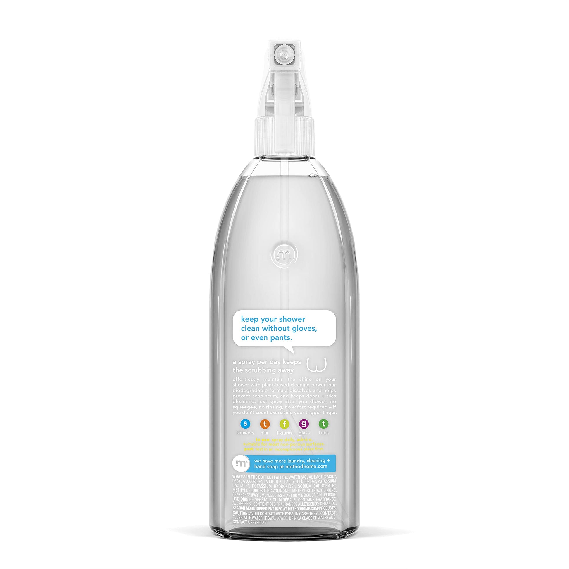Q: How does the Method Daily Shower Cleaner work?A: The Method Daily Shower Cleaner uses a plant-based biodegradable formula that dissolves soap scum and helps prevent its buildup. Simply spray it on your shower surfaces after use, and it works without the need for scrubbing or rinsing.