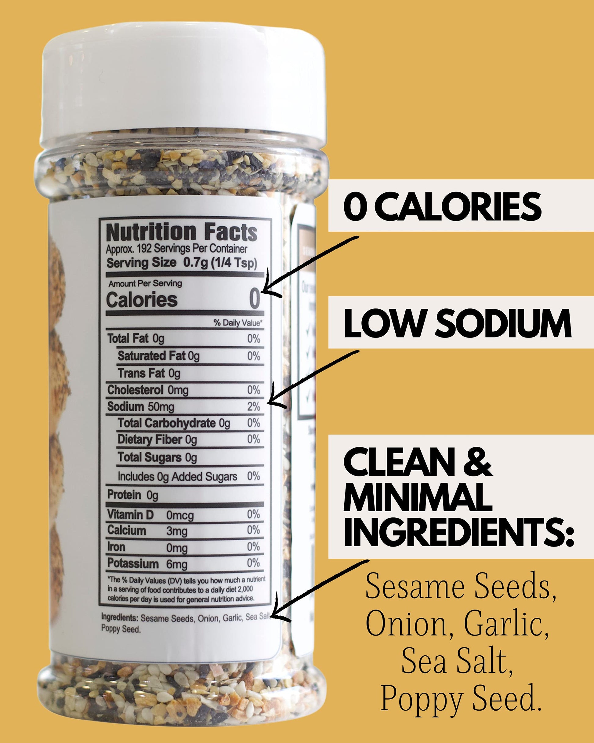 - Q: Does Everything Bagel Seasoning contain any preservatives or additives? A: No, this seasoning is made with all-natural ingredients and contains no preservatives, additives, or fillers, ensuring a clean nutritional profile.