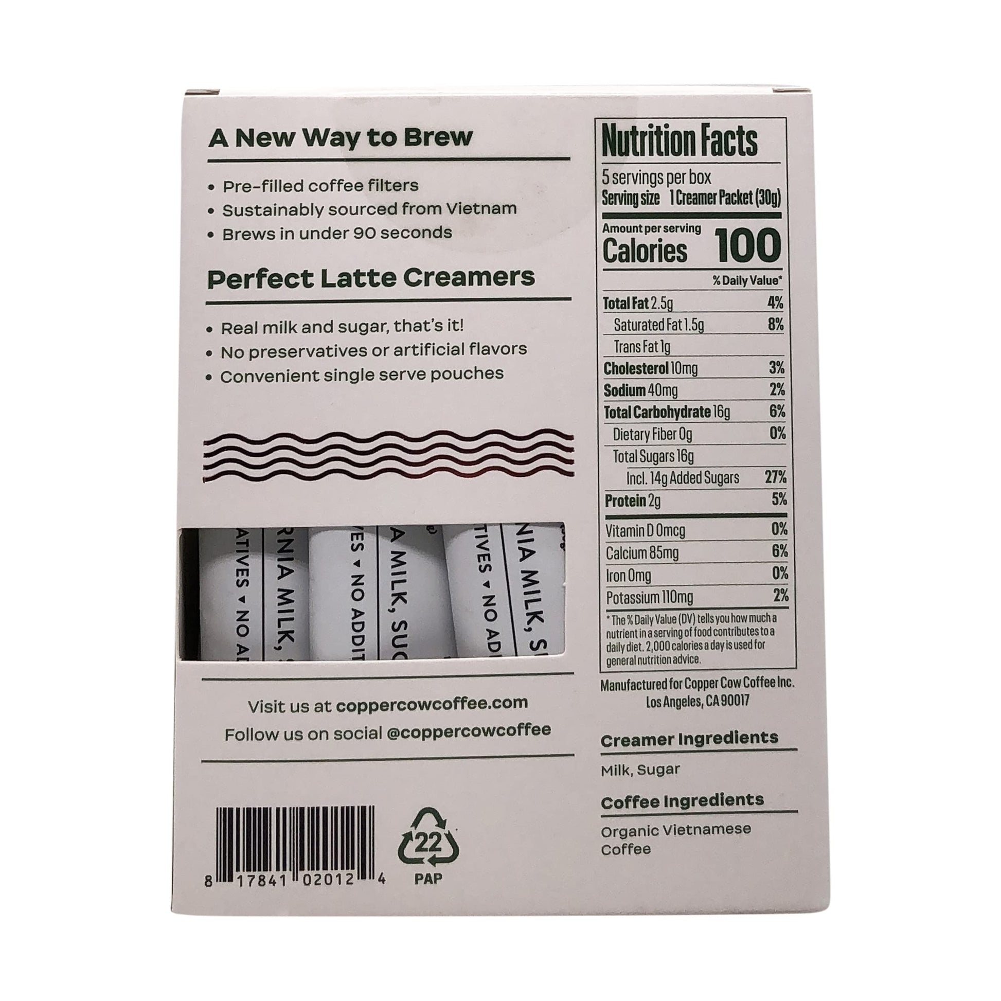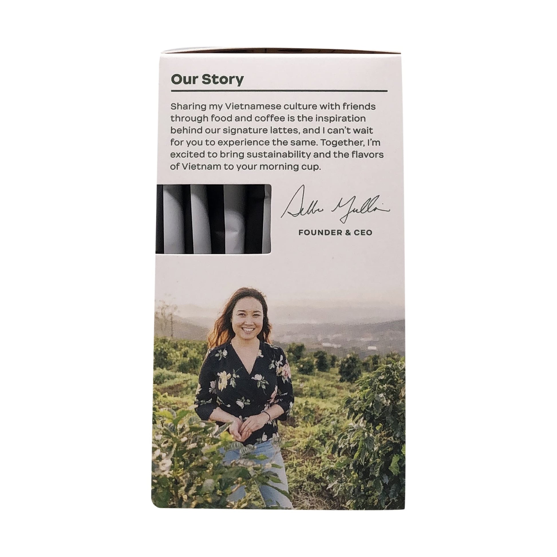 Copper Cow Coffee Single-Use Portable Pour Over packets contain everything you need to brew a cup of specialty Vietnamese coffee at home or on-the-go. No additional equipment is required: just place the pre-filled filter on a cup and add hot water for a fresh, delicious brew. Then, stir in the packet of milk and sugar with the bamboo stir stick, and youre done! Our signature is upgrading traditional Vietnamese flavors with a modern California twist. Weve combined the bitter, intensely caffeinated Robusta roast favored in Vietnam with the sweet, clean Arabica roast popular in the US specialty coffee market. The result is a strong, dark, full-bodied espresso flavor with notes of mocha that reflects the depths of our travels and influences. We source from socially responsible, sustainable organic farms in Dalat, a scenic town nestled in the temperate Central Highlands of Vietnam. This region is renowned for its weather conditions and nutrient-rich volcanic soils that combine to create the ideal coffee growing conditions. Your purchase supports our efforts to promote ethical agriculture in this region. @coppercowcoffee