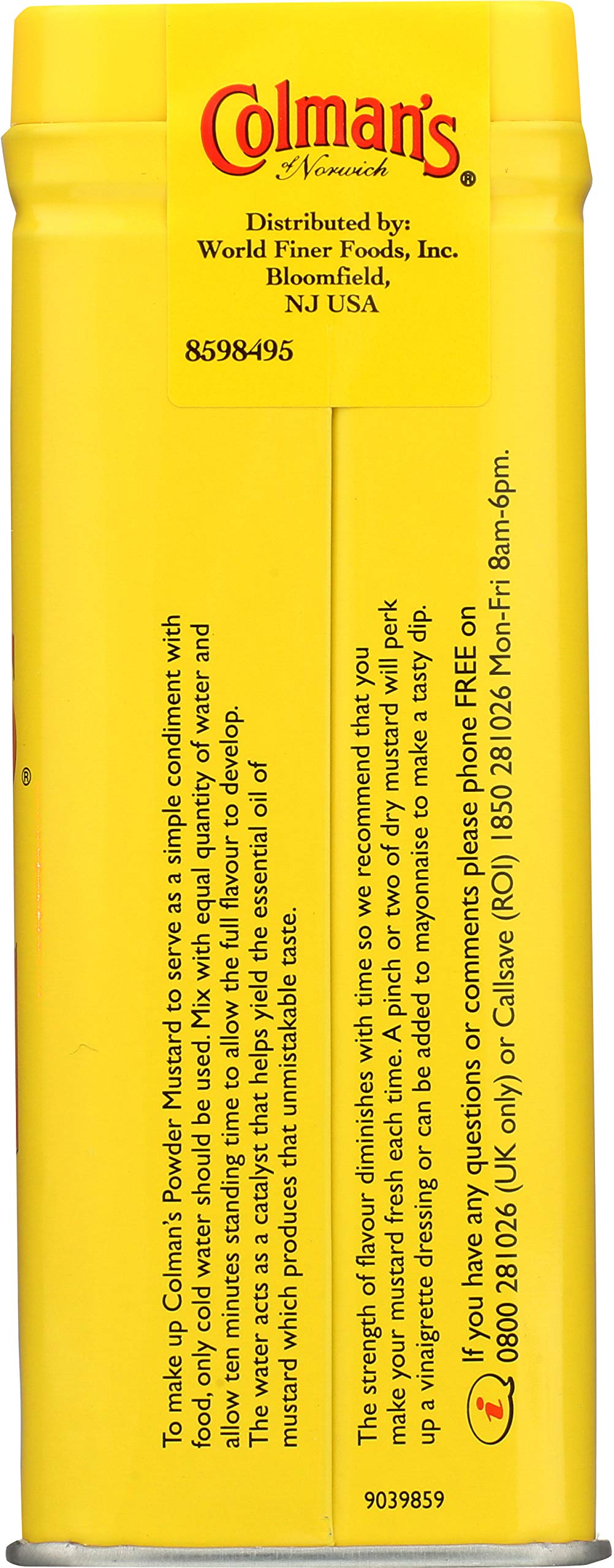 Give Your Everyday Recipes A Spicy Kick With Colmans Dry Mustard Powder. Our Gourmet Hot Mustard Is Made Using Time-Honored Traditions And The Highest Quality Ingredients. Our Mustards Perfectly Blend White And Brown Mustard Seeds From England To Heat Up Your Favorite Dishes. Dubbed The Queens Mustard And Awarded The Royal Emblem, Our Mustards Are Created With Meticulous Care And Impeccable Craftsmanship. Since 1814, Colmans Has Been Providing Mustard Options For Your Sandwiches, Stews, Dips, Dressings And More, Capturing The Taste Buds Of At-Home Chefs And Foodies. It Is A Bold, Hot Kitchen Staple. Let Colmans Bring The Heat To Your Kitchen!