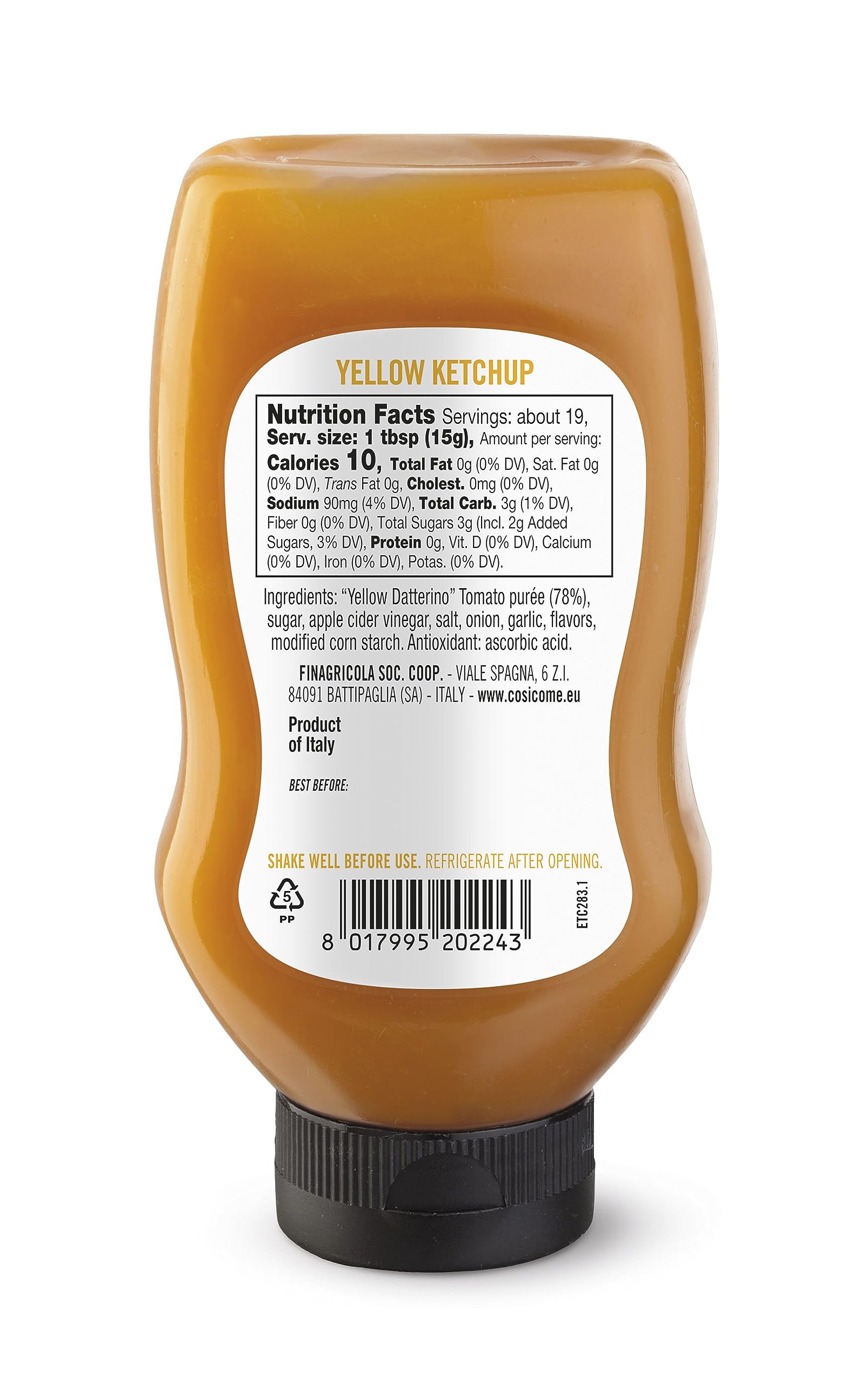 - Q: Can I use Italian Yellow Tomato Ketchup as a dip? A: Absolutely! Così Com'è Yellow Tomato Ketchup is versatile and perfect for dipping. It pairs wonderfully with fries, sandwiches, and other snacks, adding a touch of Italian flavor to your meals.