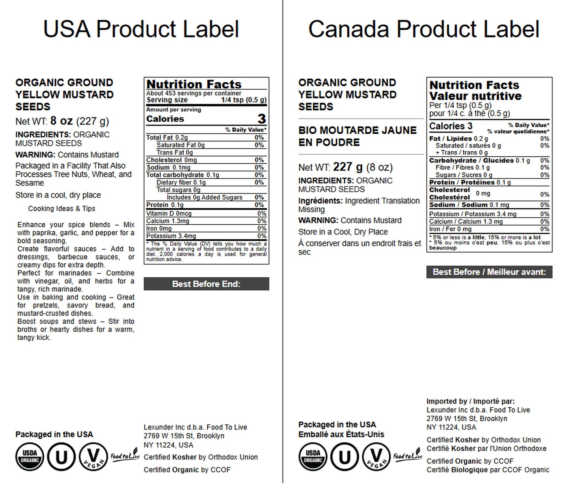 Organic Ground Yellow Mustard Delivers A Bold, Tangy Flavor With A Hint Of Spice, Making It A Versatile Addition To Various Dishes. This Finely Ground Mustard Powder Is Derived From High-Quality Mustard Seeds, Creating A Smooth Texture That Blends Seamlessly Into Recipes. Its Warm, Slightly Sharp Taste Enhances Both Savory And Pickled Dishes, Bringing Depth And Complexity To Meals. This Mustard Powder Is A Staple Ingredient In Many Cuisines And Works Well In Spice Blends, Marinades, And Sauces. It Adds A Subtle Heat And Rich Flavor To Barbecue Rubs, Salad Dressings, And Dipping Sauces. Its Smooth Consistency Also Makes It Ideal For Homemade Mustard Condiments, Seasoning Blends, And Baked Goods Like Pretzels And Crackers. Incorporate Organic Ground Yellow Mustard Into Your Cooking By Mixing It With Vinegar And Spices For A Tangy Mustard Sauce. Use It In Dry Rubs For Meats, Add It To Soups And Stews For A Bold Depth Of Flavor, Or Blend It Into Creamy Spreads For Sandwiches And Dips. It Also Enhances Pickling Recipes, Providing A Traditional, Well-Rounded Taste. Store In An Airtight Container In A Cool, Dry Place To Maintain Its Freshness And Aroma. Versatile And Easy To Use, Organic Ground Yellow Mustard Is A Great Way To Bring A Tangy Kick To Everyday Dishes.