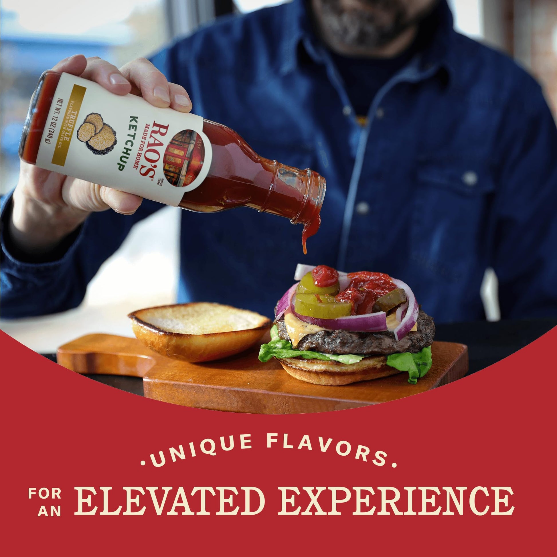 - Q: How can I use Rao’s Truffle Ketchup in my meals? A: Rao’s Truffle Ketchup is versatile and can be used in place of your favorite condiments. It's perfect for enhancing the flavor of french fries, burgers, hot dogs, and even gourmet dishes like arancini and zucchini fritto.