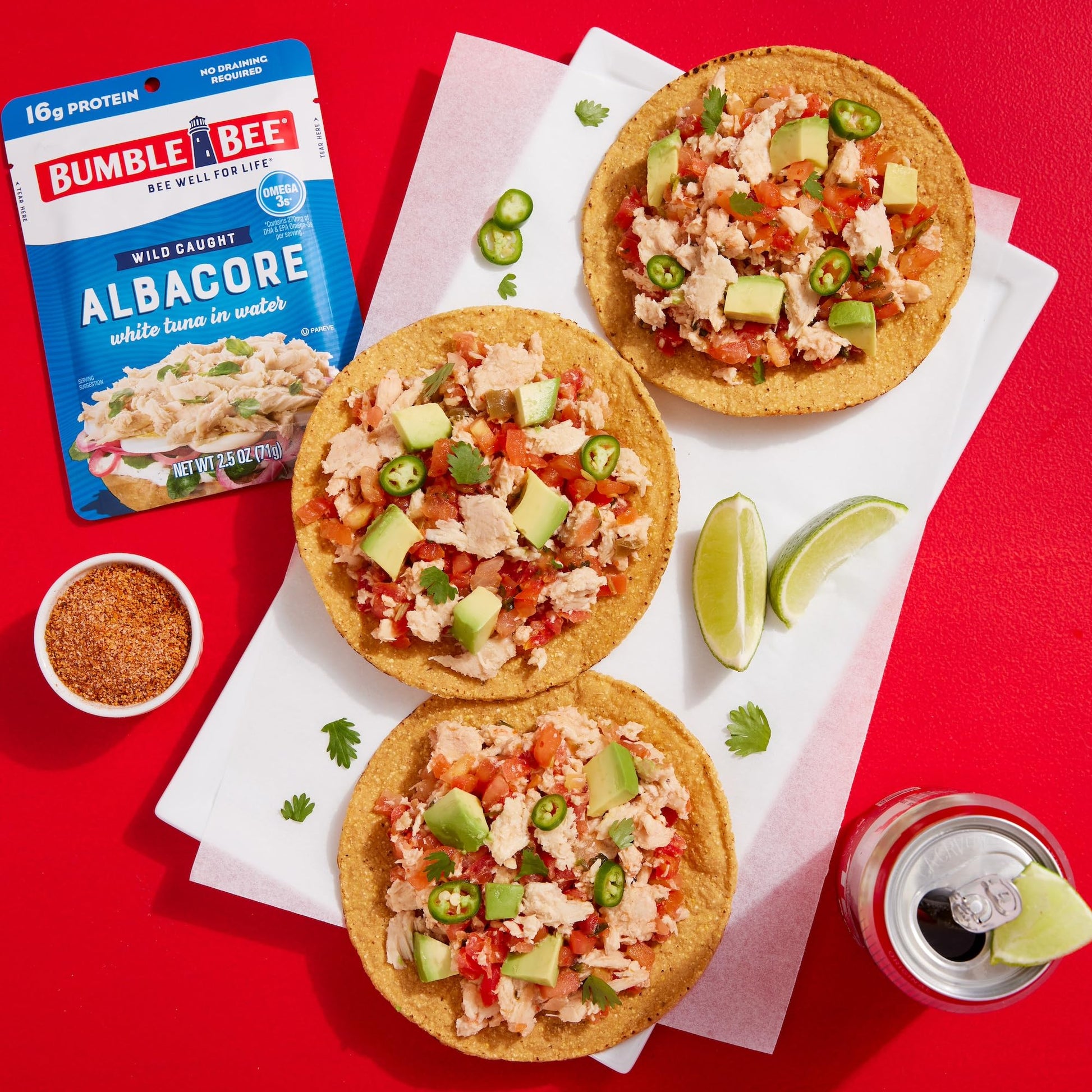 Q: How can I use BUMBLE BEE Tuna in my meals?A: You can use BUMBLE BEE Premium Albacore Tuna in various ways, such as a post-workout snack, a protein-rich addition to salads, lettuce wraps, or sandwiches, and even in recipes for tuna casseroles and dips.