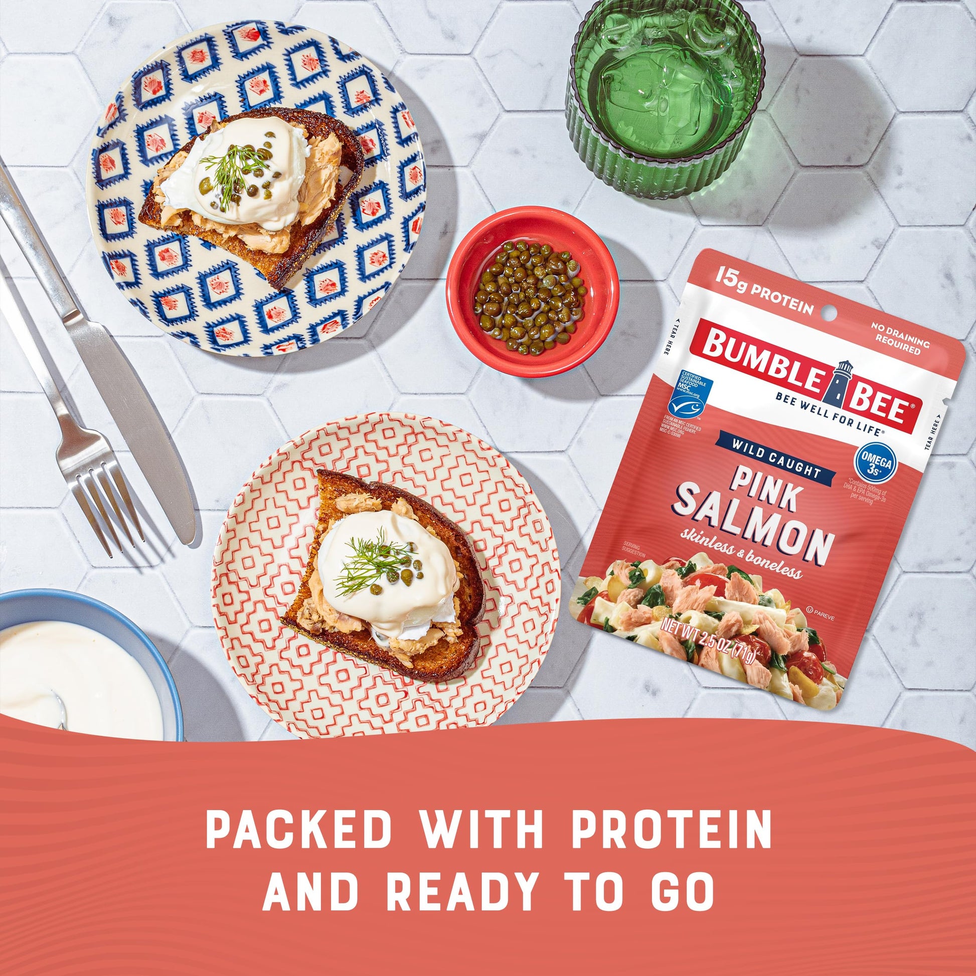 - Q: Can I eat Bumble Bee pink salmon directly from the pouch? A: Yes, you can eat Bumble Bee Skinless & Boneless Pink Salmon directly from the pouch for a convenient and nutritious snack.