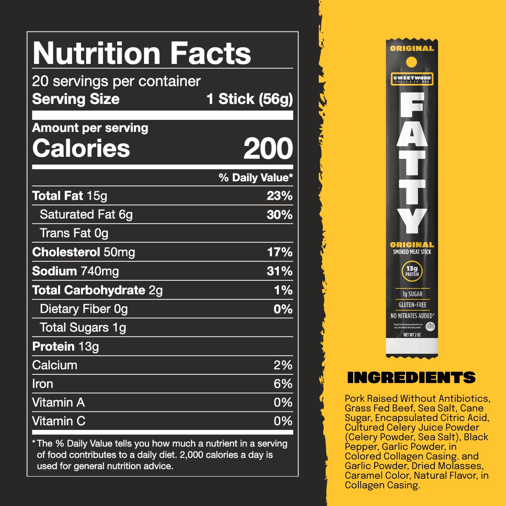 - Q: Are FATTY Meat Sticks gluten-free? A: Yes, FATTY Meat Sticks are gluten-free and do not contain nitrites, nitrates, MSG, artificial colors, or flavors, offering a clean snacking experience.