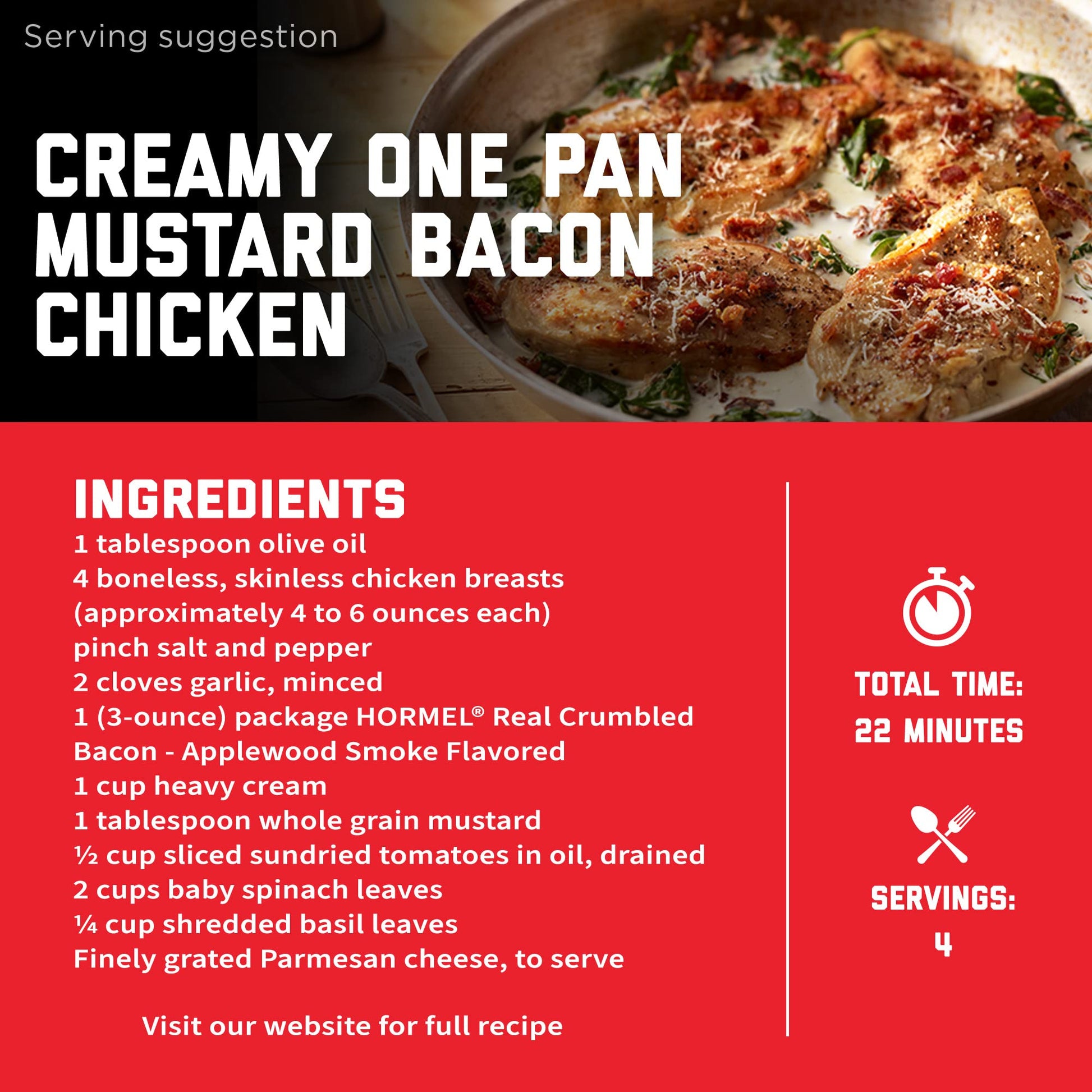 Elevate your meals with HORMEL Real Cspirit-inspired flavorbled Bacon, Applewood Smoke Flavored. These savory bacon bits are the perfect addition to enhance the flavor of your favorite dishes without the guilt of excess fat. Enjoy the rich, smoky taste that HORMEL has perfected over a century in the industry.