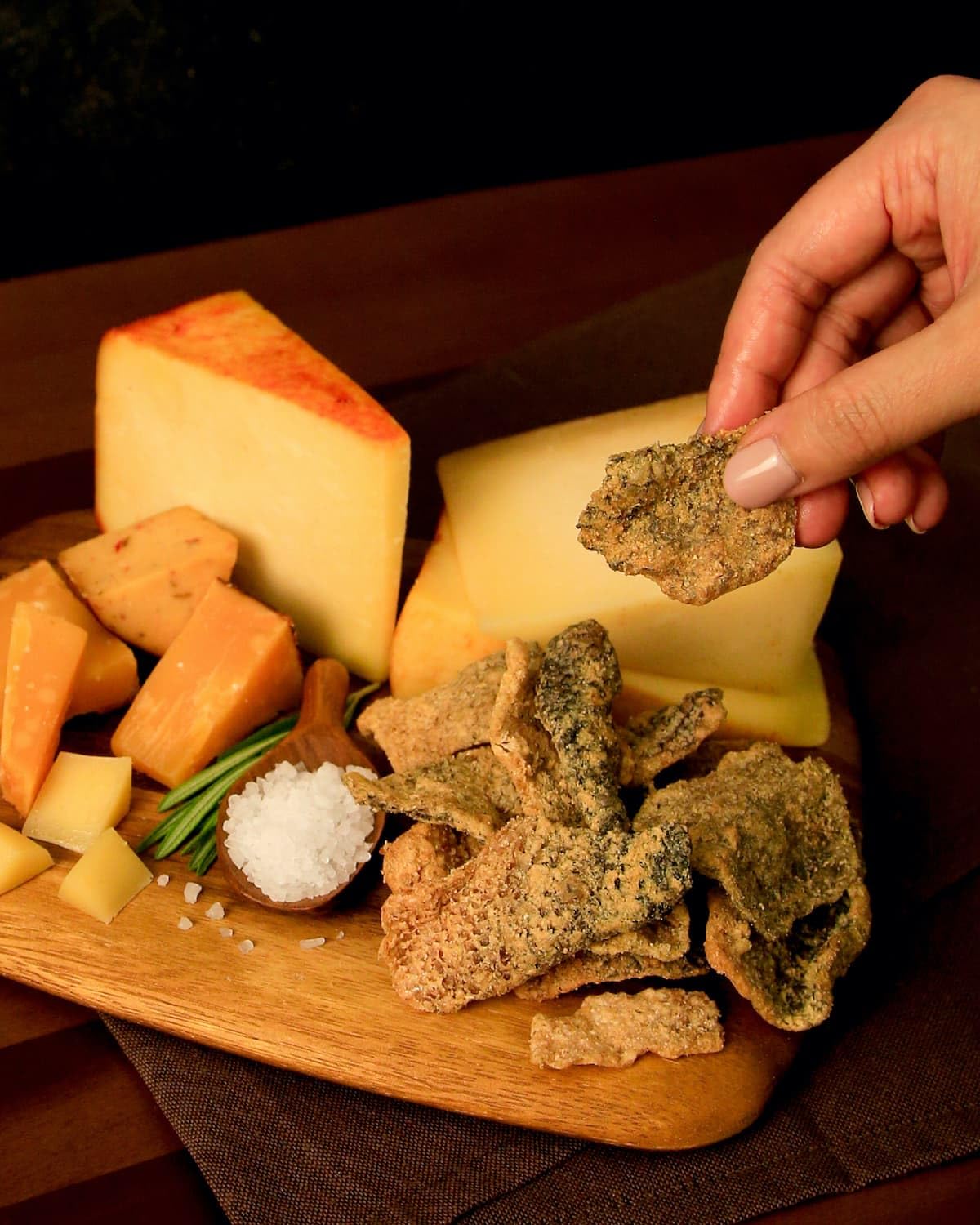 - Q: What are the main ingredients in IRVINS Smoked Cheese Salmon Skin Chips? A: IRVINS Smoked Cheese Salmon Skin Chips are primarily made from upcycled salmon skin, salted duck egg yolks, aromatic curry leaves, and birds eye chili pepper. These whole food ingredients are carefully crafted in small batches to create a unique snacking experience.
