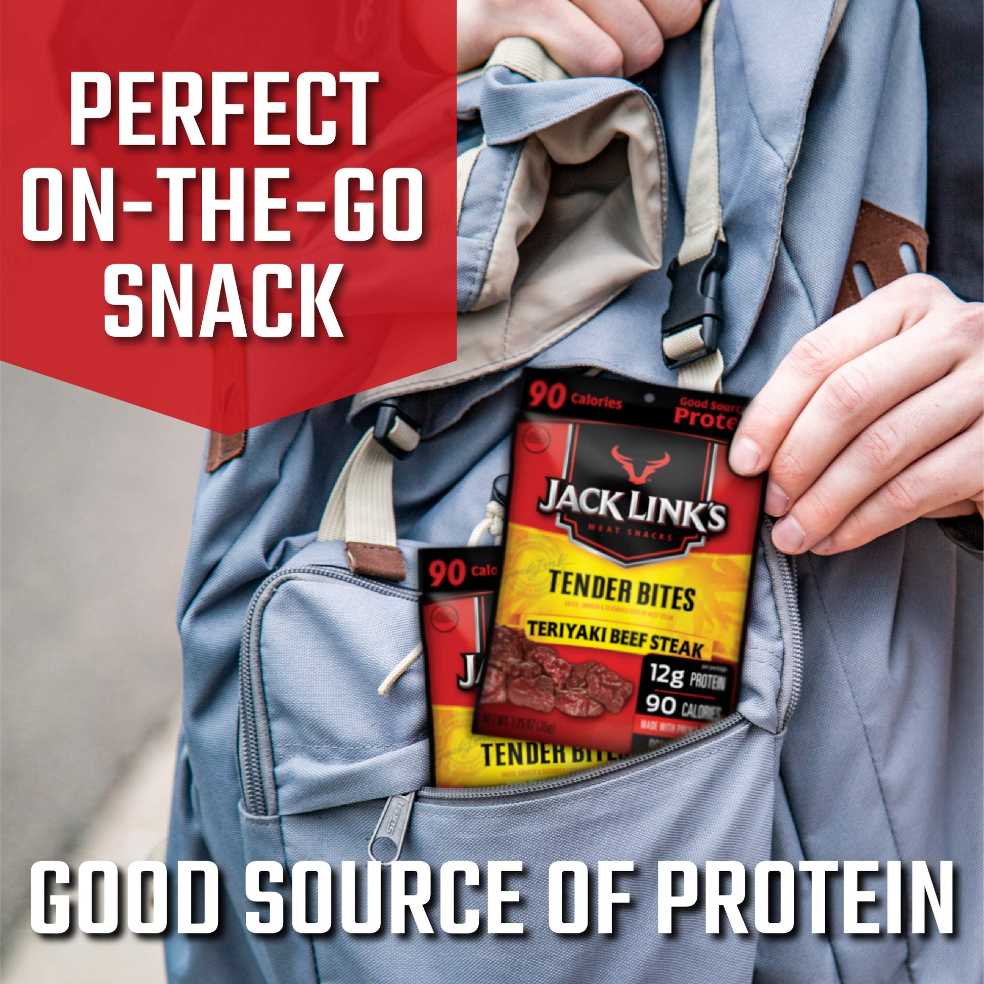 - Q: How much protein is in each serving of Jack Link's Teriyaki Tender Bites? A: Each serving of Jack Link's Teriyaki Tender Bites contains twelve grams of protein, making them a convenient and protein-rich snack option.