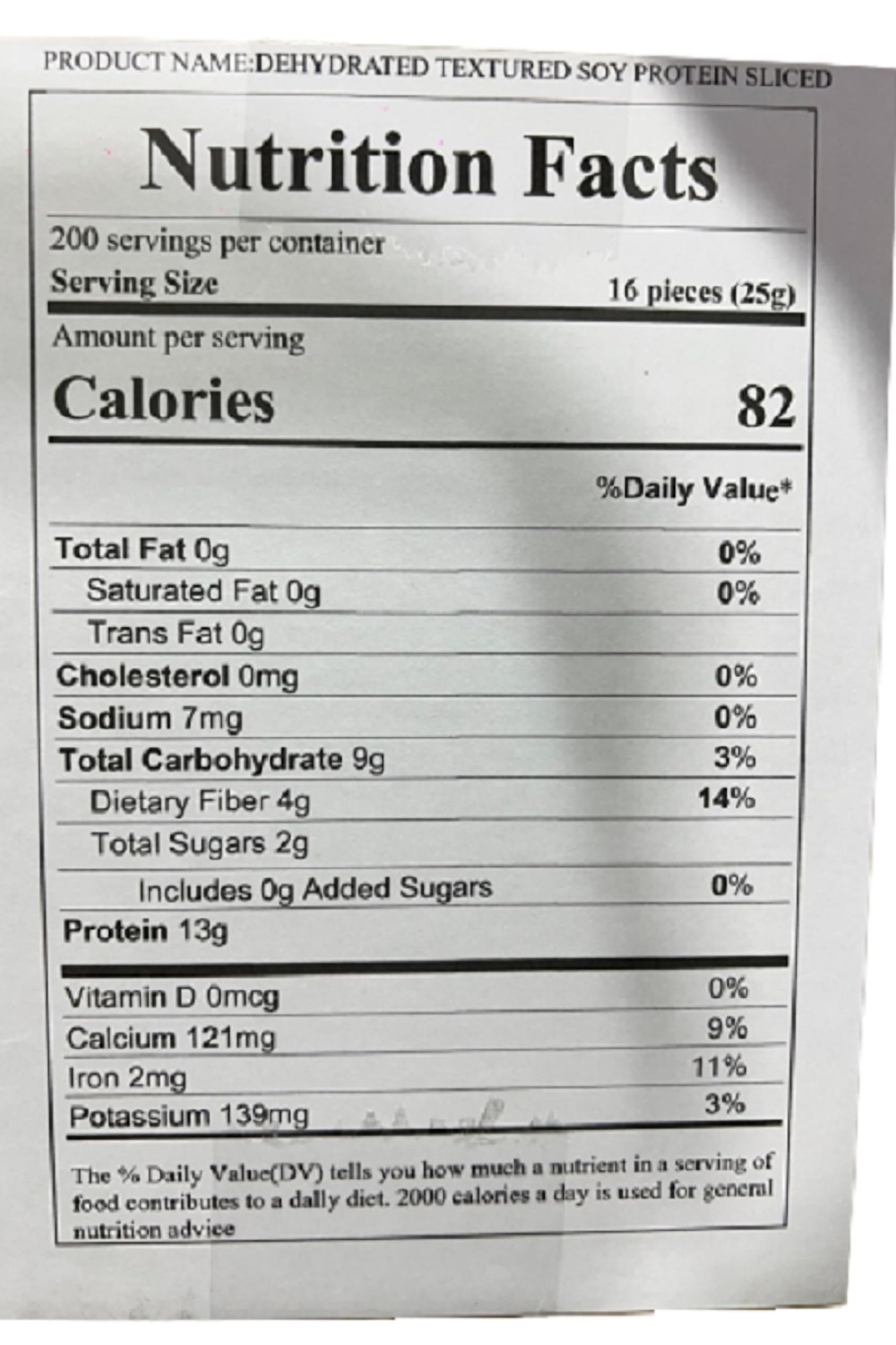 Ingredients:Non-Gmo Soy Protein, Starch, Wheat Protein, Calcium Carbonate, Calcium Sulphate. Cooking Instruction:Stir Fry, Deep Fry, Stove Top. Tvp Stands For Textured Vegetable Protein In The Form Of Granules That Make A Fantastic Quick Meat Substitute For Meals Such As Bolognaise Or Chili. It Is Also Great For Pasta Sauces, Tacos, For Making Your Own Veggie Burgers, Meat Loaf Or Soy Meat Balls. It Is High In Protein, Fibre And Iron And Free Of Cholesterol And Fat. It Has A Chewy Consistency Similar To Ground Meat And Takes On The Flavor Of Whatever Dish You Are Cooking. Because It Is A Dehydrated Product, It Needs To Be Sit In Hot Water For About 10-15 Minutes For More Before Being Ready To Eat.